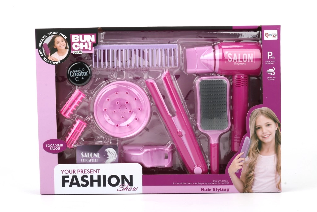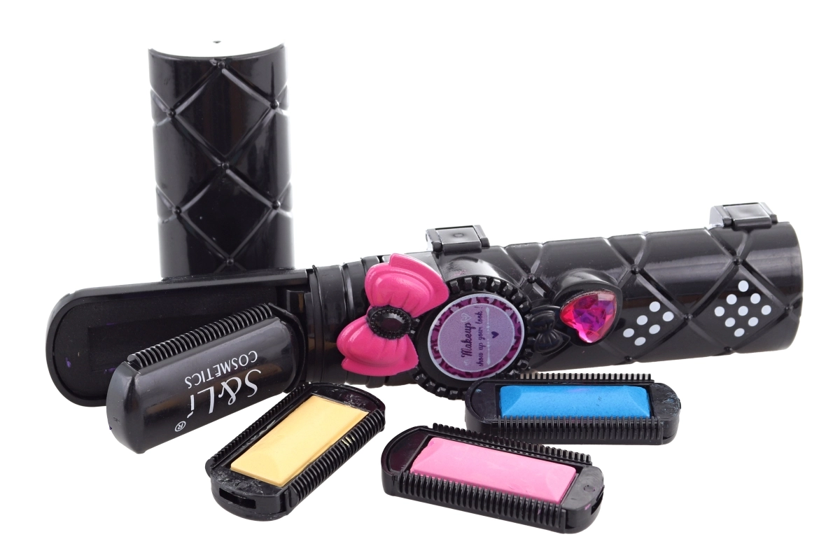 Kozmetički koferi, toaletni stolići i frizerski setovi sadrže češljeve, četke, trake za kosu, ukosnice, viklere, dječje sušilo za kosu, peglu ili uvijač (igračke), sigurna zrcala i bogatu dodatnu opremu. Dječji make‑up obično je netoksičan, periv i nježan prema koži; lakovi za nokte na bazi vode lako se ispiru bez acetona. U ponudi su izdržljivi plastični i drveni setovi, kompaktni koferi za putovanja i veći kozmetički stolići za punu igru zanimanja.