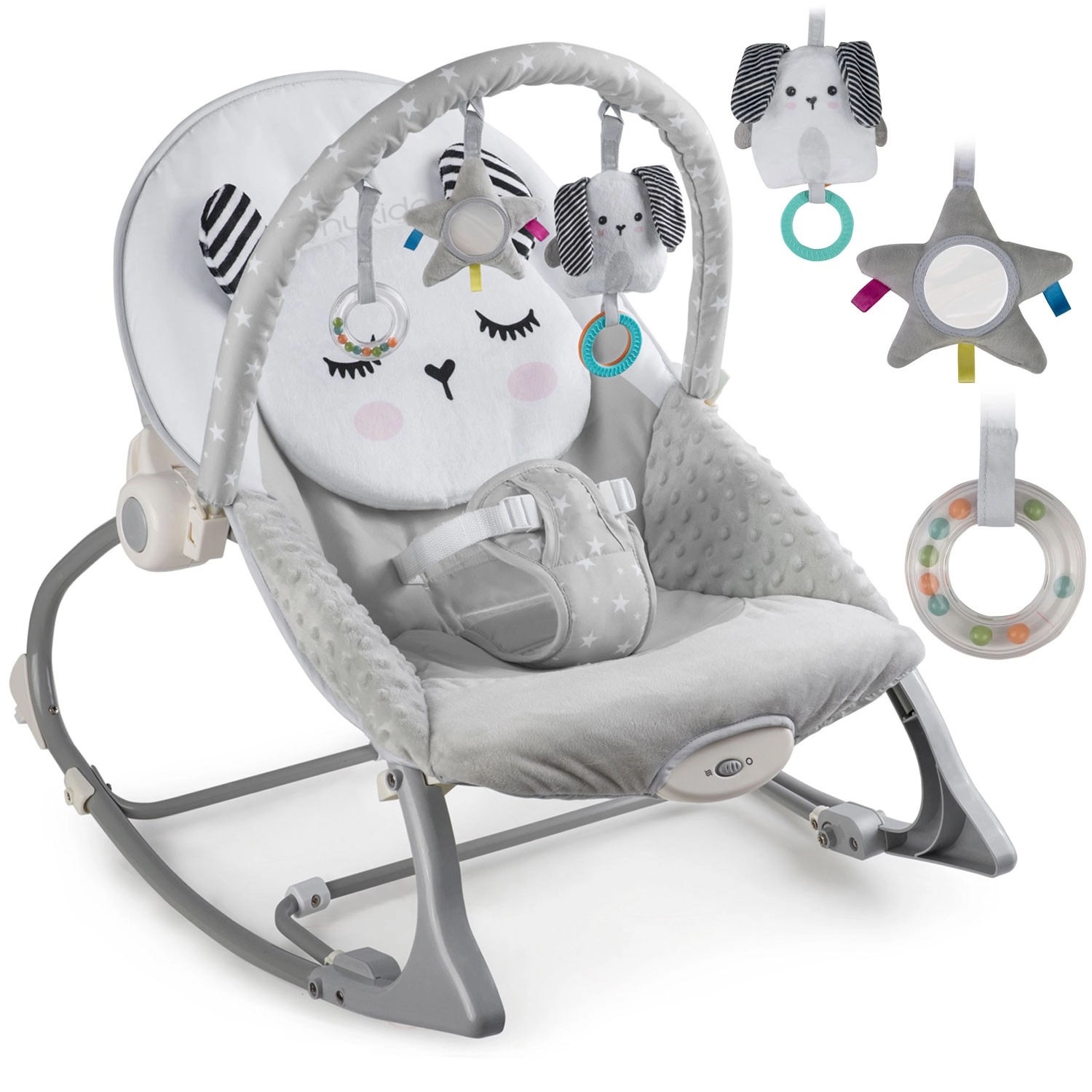 Lagana i sklopiva konstrukcija omogućuje jednostavno prenošenje po stanu i na putovanjima; kompaktne dimenzije prikladne su za manje prostore. Hupalica s igračkama i lukom za igru potiče razvoj osjetila, dok nježne vibracije i mjerač vremena pomažu brzom umirenju i mirnom snu. Moderan, stilski dizajn i kvalitetni materijali čine hupalicu praktičnim pomoćnikom za novorođenčad i malu djecu.