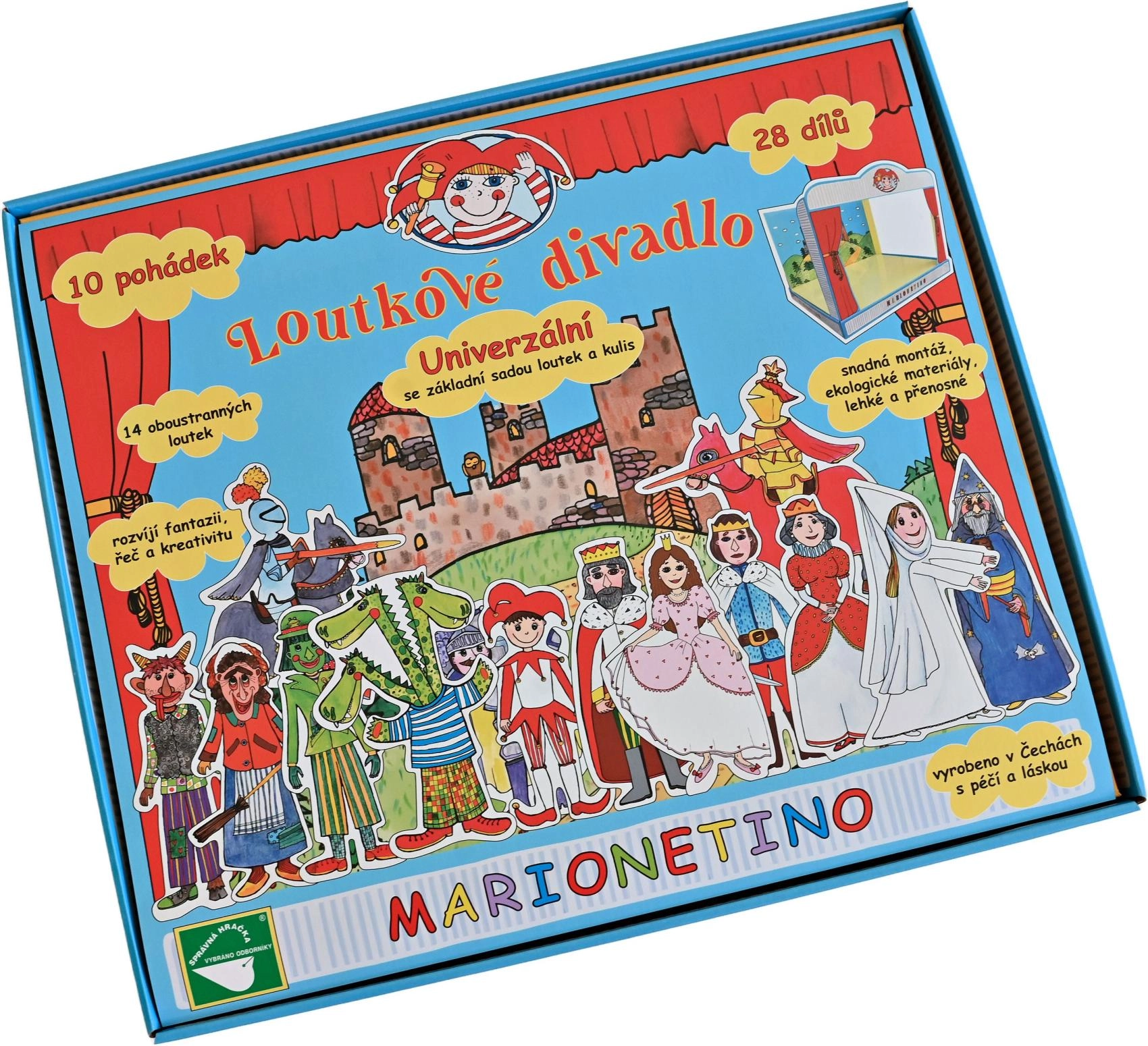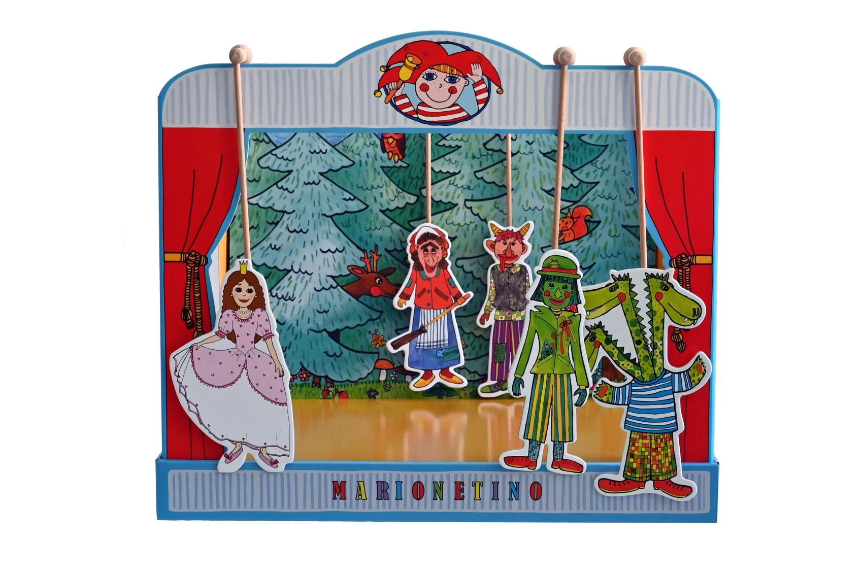 Na raspolaganju su stolno i putno kazalište, klasično drveno kazalište, papirnato i magnetsko kazalište te setovi za projekcije sjena. U mnogim setovima pronaći ćete pozornicu, kulise, rekvizite i lutke ili maňuške; konstrukcija je osmišljena za laku montažu i sigurne materijale. Kvalitetna izrada i stabilna scena podnose često igranje i omogućuju jednostavno proširivanje novim likovima.