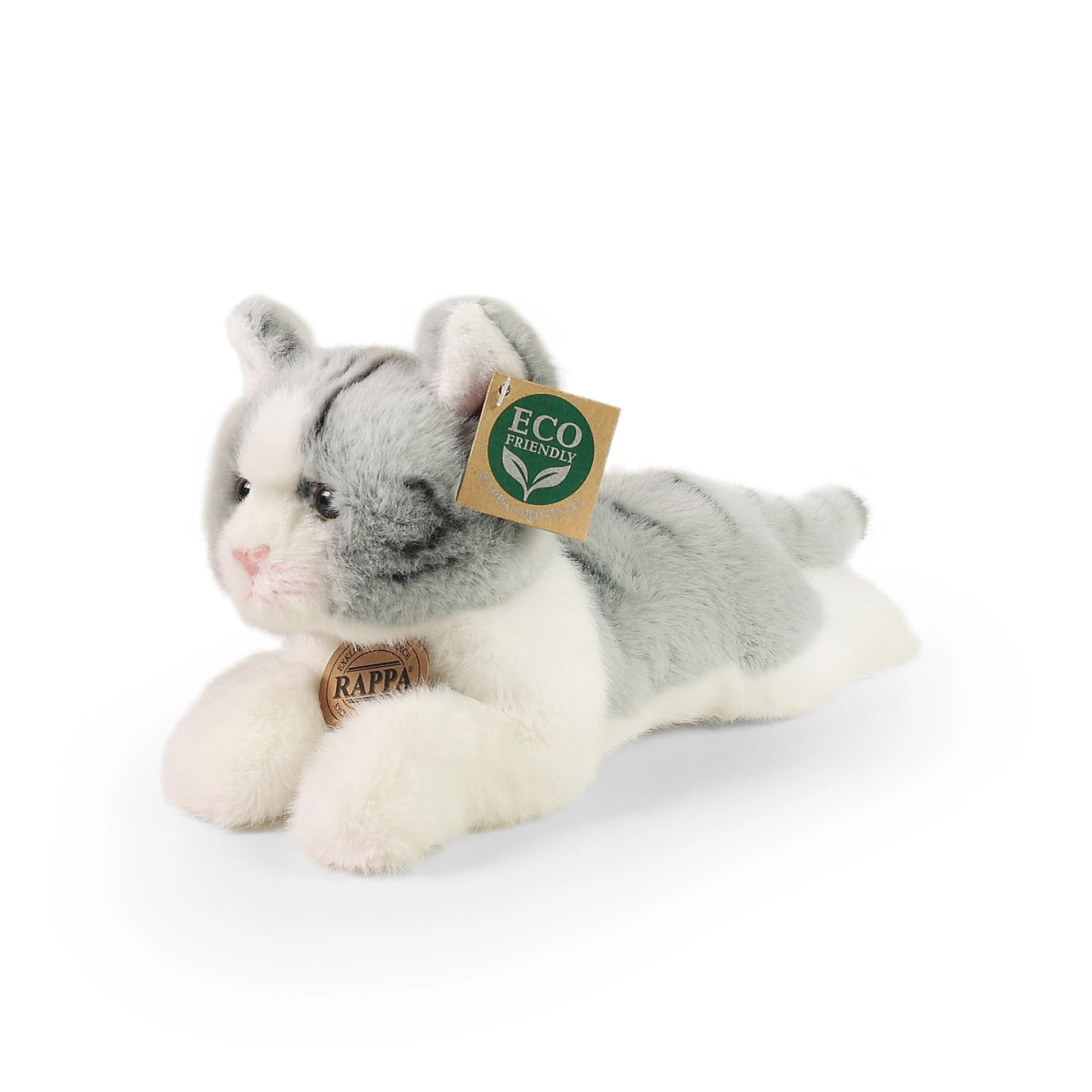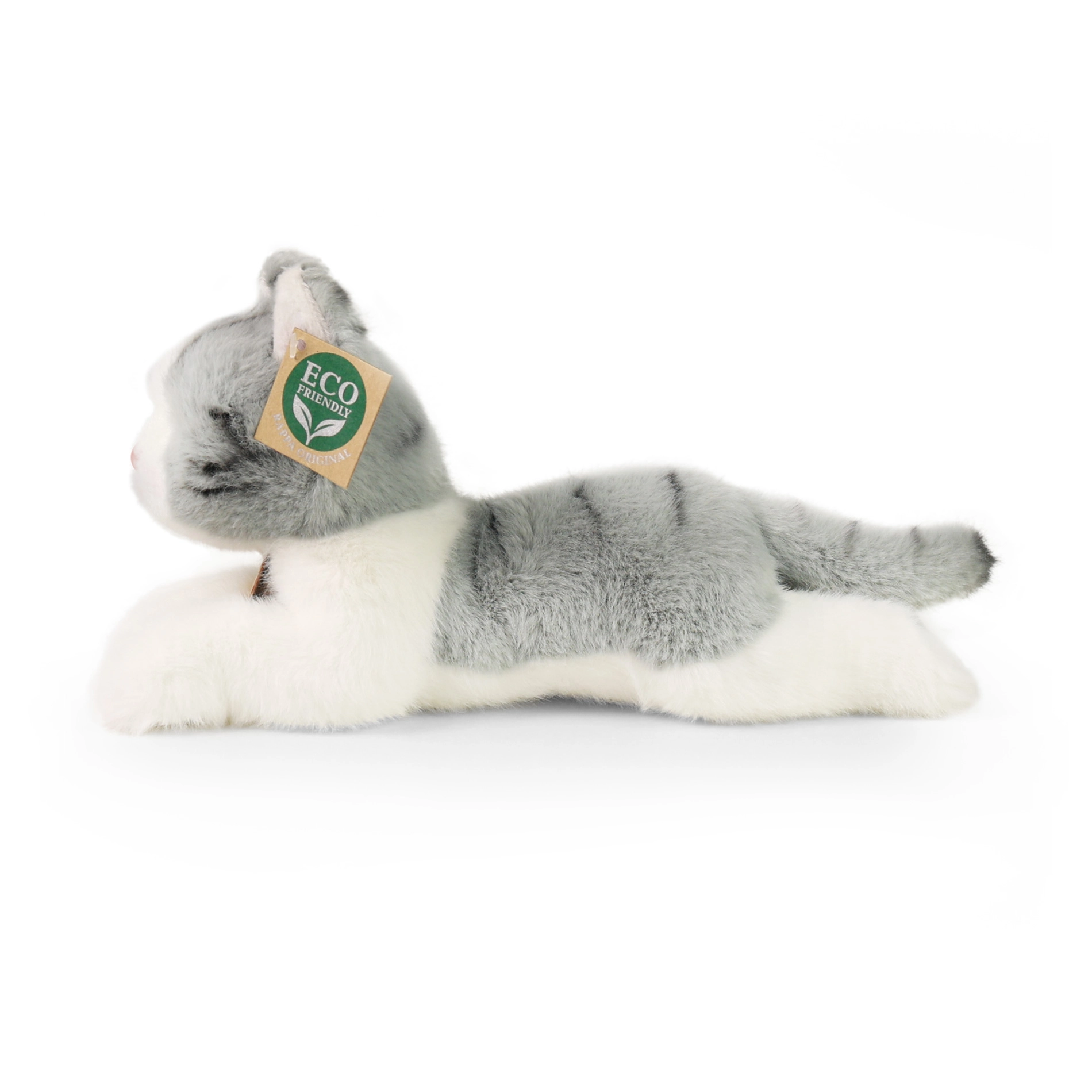 pliš mačka siva ležeća 20 cm ECO-FRIENDLY