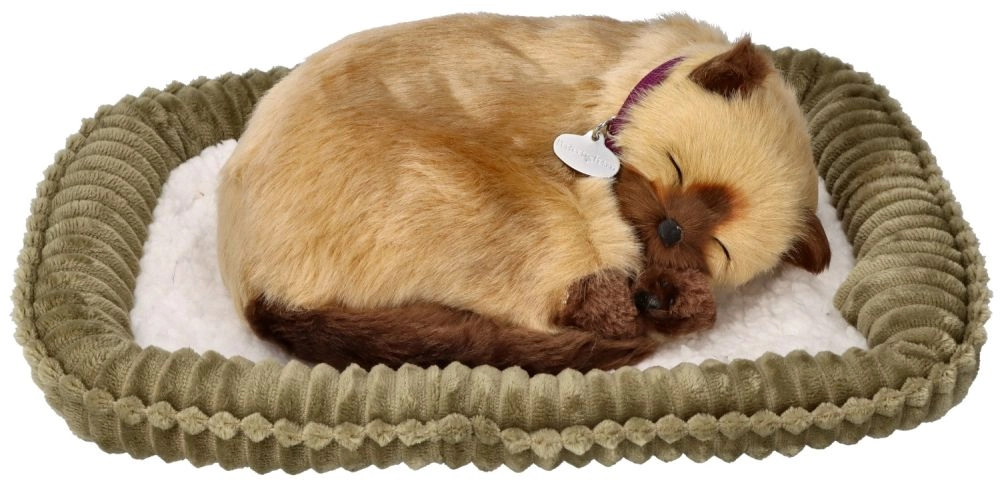 Dišuće sijamsko mače – realistična plišana mačka na ležaljci