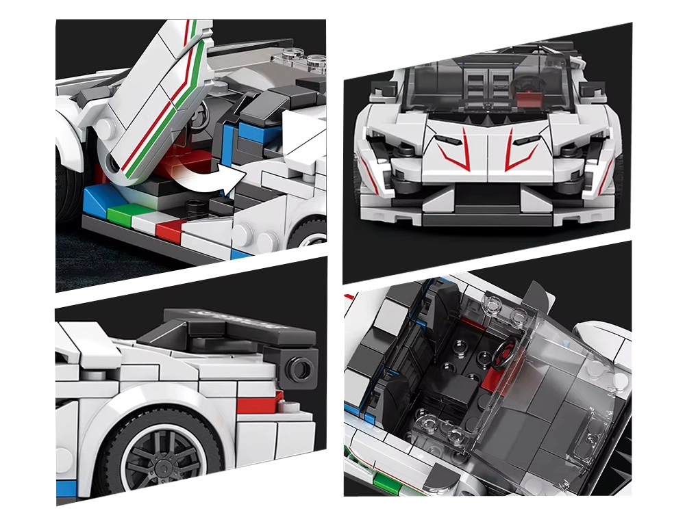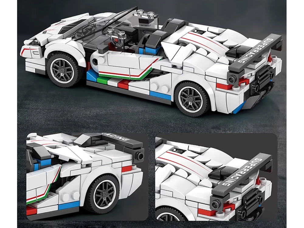 Tehnička građevna set-konstrukcija – bijeli supersportski kabrio sa spojlerom, 348 dijelova