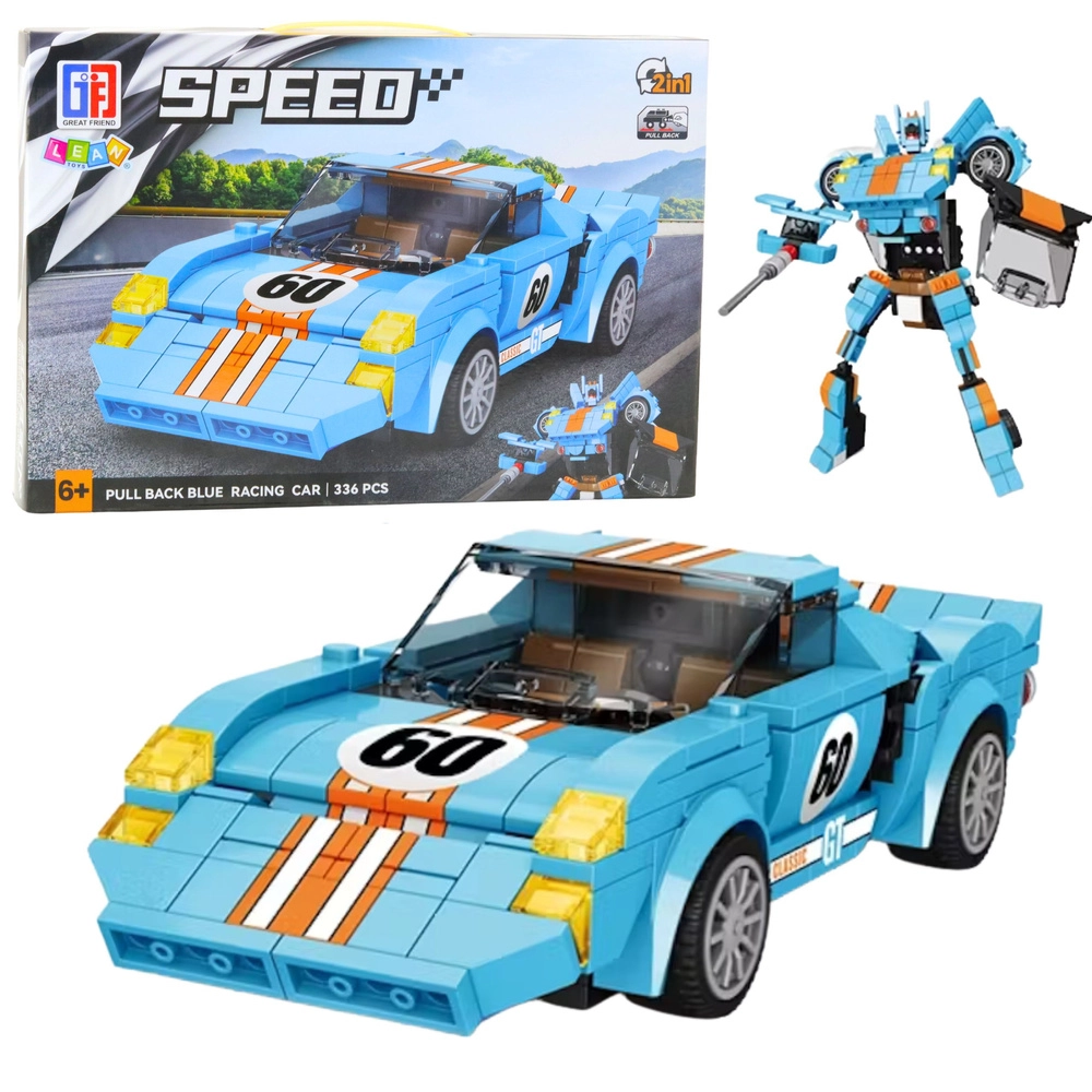 Konstrukcijski set Auto Robot 2u1 Narančasto-Plavi Pogon 336 dijelova
