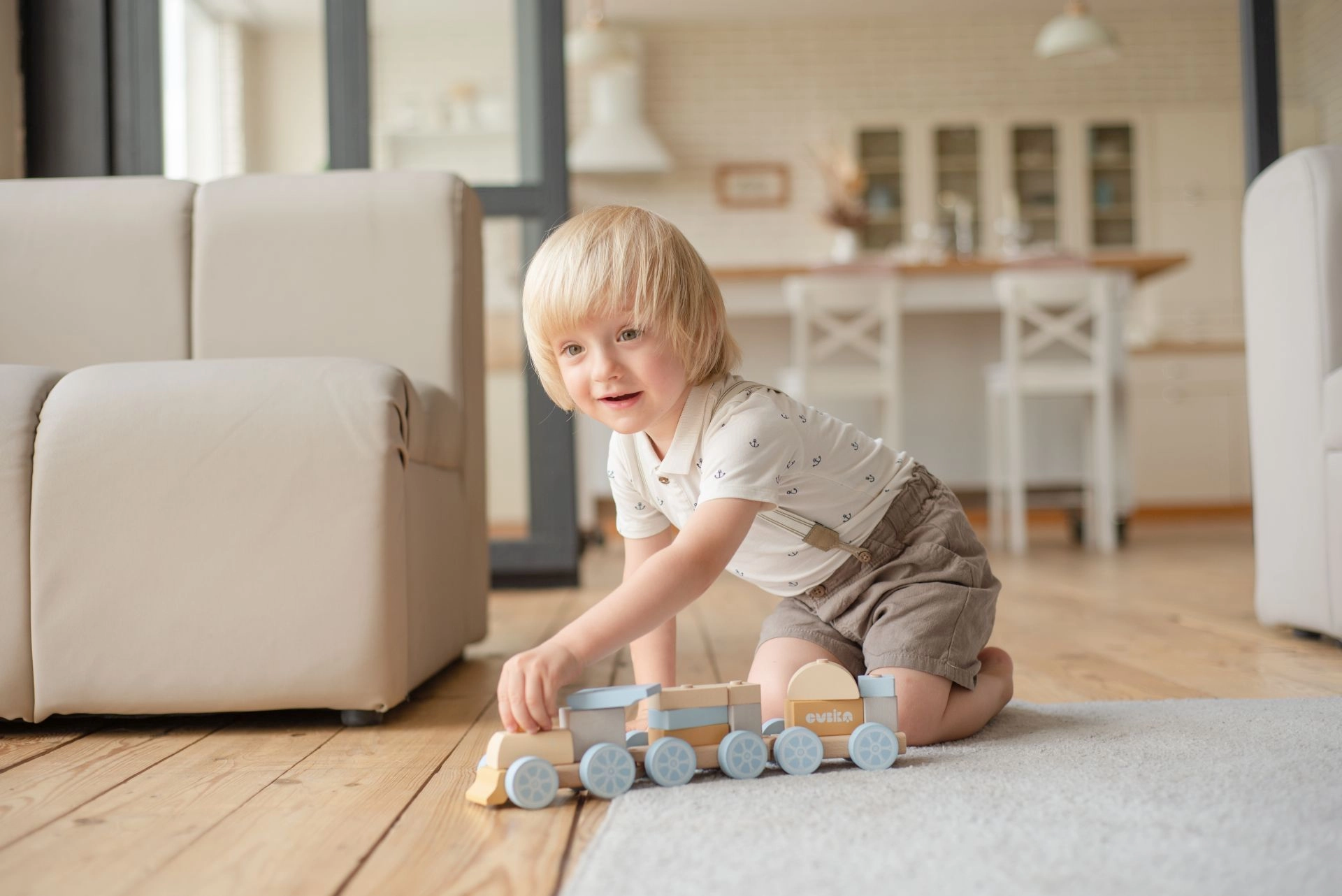 Zazvonite zvoncem i pokrenite motore – kategorija Vlakovi i autići poziva djecu na beskrajne avanture po tračnicama i cestama. Drveni vlakovi, lokomotive i vagoni s magnetskim spojkama, kvalitetne drvene tračnice, prijelazi, mostovi, tuneli i kolodvori, uz to drveni autići, ceste, parkirališta i prometni znakovi – sve za realističnu igru. Naglasak na sigurnim površinama, izdržljivoj izradi i bezvremenskom dizajnu od prirodnih materijala.