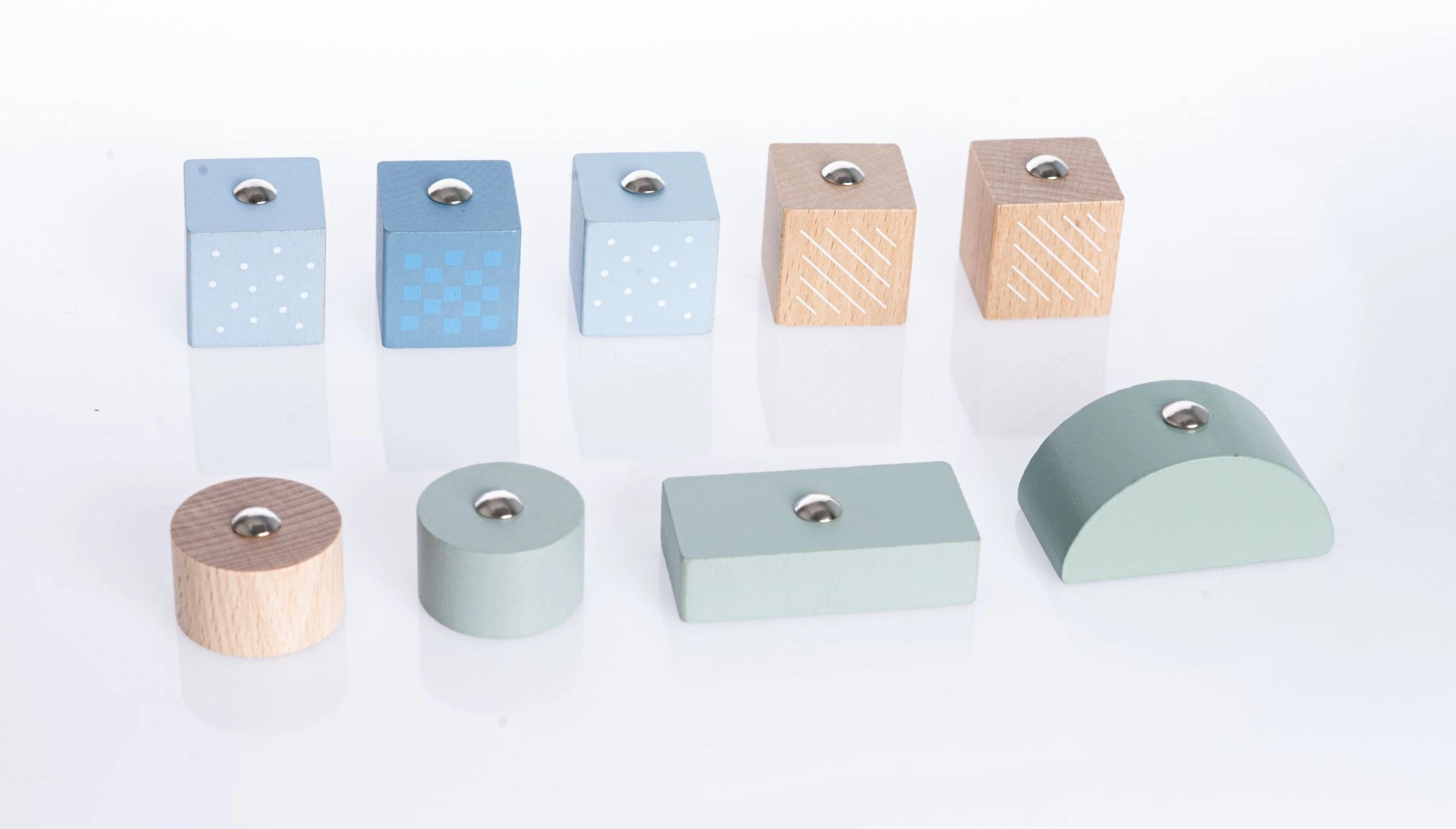 Izgradnja vlastitog vlakodroma i grada razvija finu motoriku, koordinaciju oko–ruka i logičko razmišljanje. Otvorena kreativna igra potiče maštu i učenje o prometu i pravilima u prometu. Drveni vlakovi za djecu i drveni autići lako se nadograđuju: modularne drvene tračnice, skretnice, raskrižja i križanja cesta, magnetski vagoni i lokomotive – sve je varijabilno i obično kompatibilno s uobičajenim drvenim vlakodromima. Za početak odaberite početni set vlakodroma s tračnicama, lokomotivom i vagonima, ili posegnite za proširenjima: setovi tračnica, skretnice, mostovi, tuneli, kolodvori, prijelazi i dodaci poput prometnih znakova ili figurica. Za cestovni svijet dodajte garažu, parkiralište, servis i tematska vozila (trkaći auto, autobus, vatrogasci, policija). Drveni vlakovi i autići odlikuju se dugim vijekom trajanja, ekološkim materijalom i beskrajnom zabavom za male strojovođe i vozače.