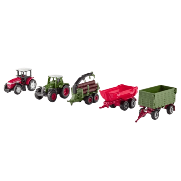 Igra farme razvija finu motoriku, koordinaciju oko–ruka i maštu. Bilo da tražite traktor za djecu s prikolicom/platformom, kombajn sa svjetlom i zvukom, utovarivač, balirku ili čitav set poljoprivrednih vozila sa životinjama, očekuje vas kreativna igra za dječake i djevojčice od 3 godine. Odaberite poljoprivredna vozila koja će obogatiti svaku kolekciju i pretvoriti tepih u polje, livadu i dvorište.