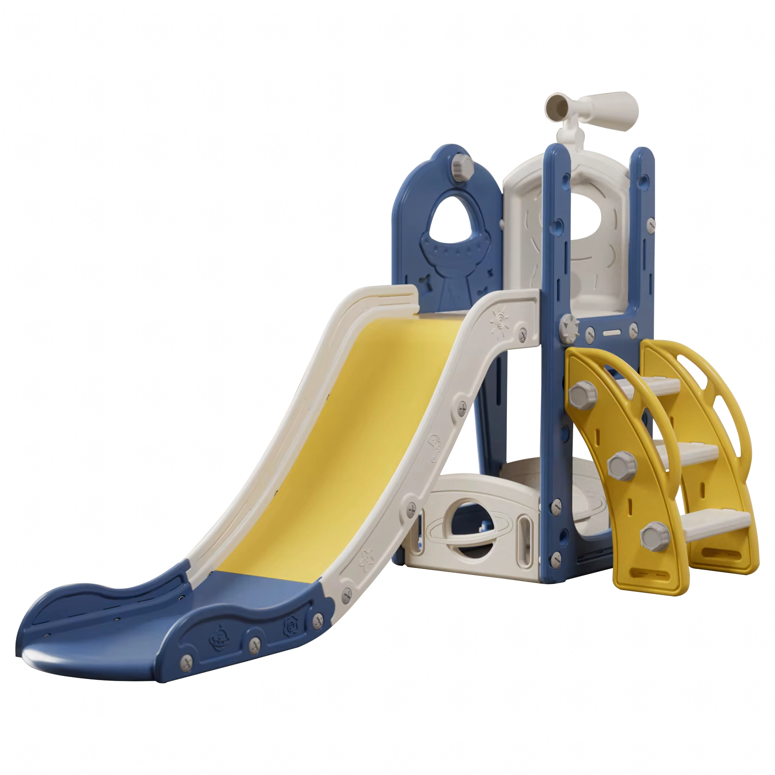 Promišljeni detalji osiguravaju sigurnost i izdržljivost: protuklizne stepenice, široke gazišne površine, zaobljeni rubovi, UV otporan materijal (kvalitetna plastika) i periva površina za dug vijek trajanja. Dječji tobogan za vrt jednostavno se instalira na igraću kulu ili platformu – varijante za različite visine pričvršćivanja i tipove konstrukcija. Stabilna baza i velika nosivost čine vanjski tobogan sigurnim izborom za svakodnevnu igru.