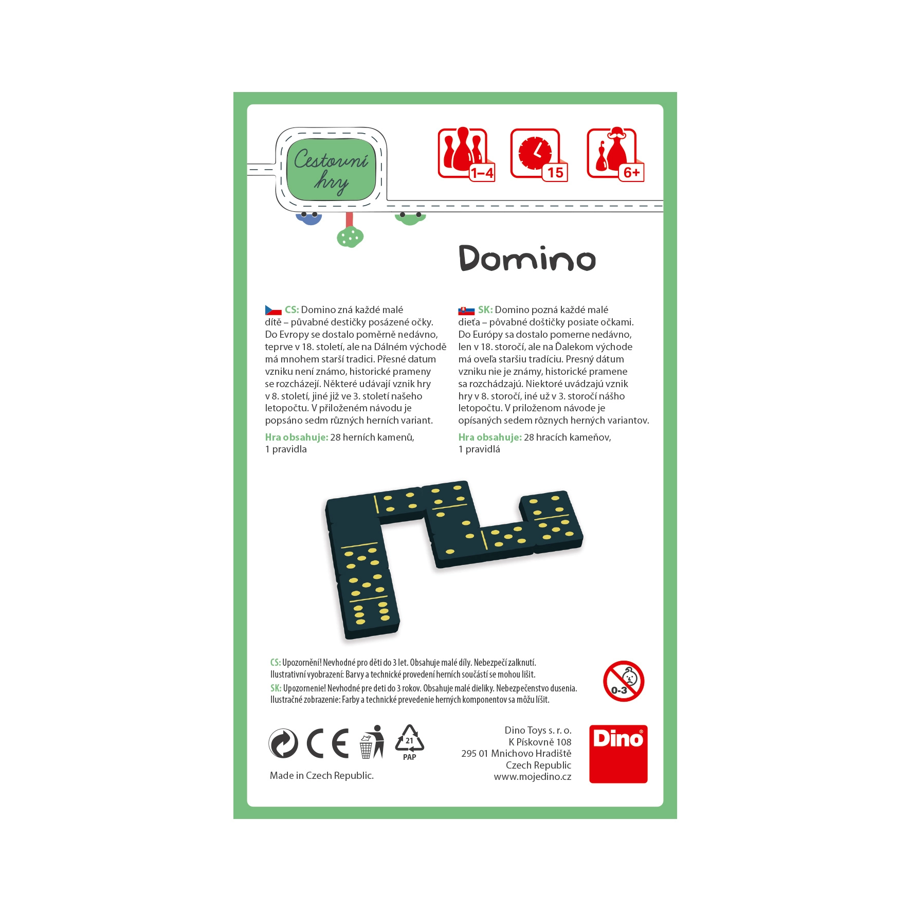 Domino je odličan za razvoj logičkog mišljenja, računanja, planiranja i fine motorike djece; odraslima nudi ugodnu relaksaciju i strateški izazov. Osim klasične igre, možete slagati i dominove staze i uživati u efektu glatko padajućih pločica. Zahvaljujući kompaktnim dimenzijama i brojnim varijantama igre (blok, bodovanje i „povlačenje”) domino je prilagodljiv suigrač za 2–6 igrača i veće grupe – kod kuće, na izletu i na odmoru.