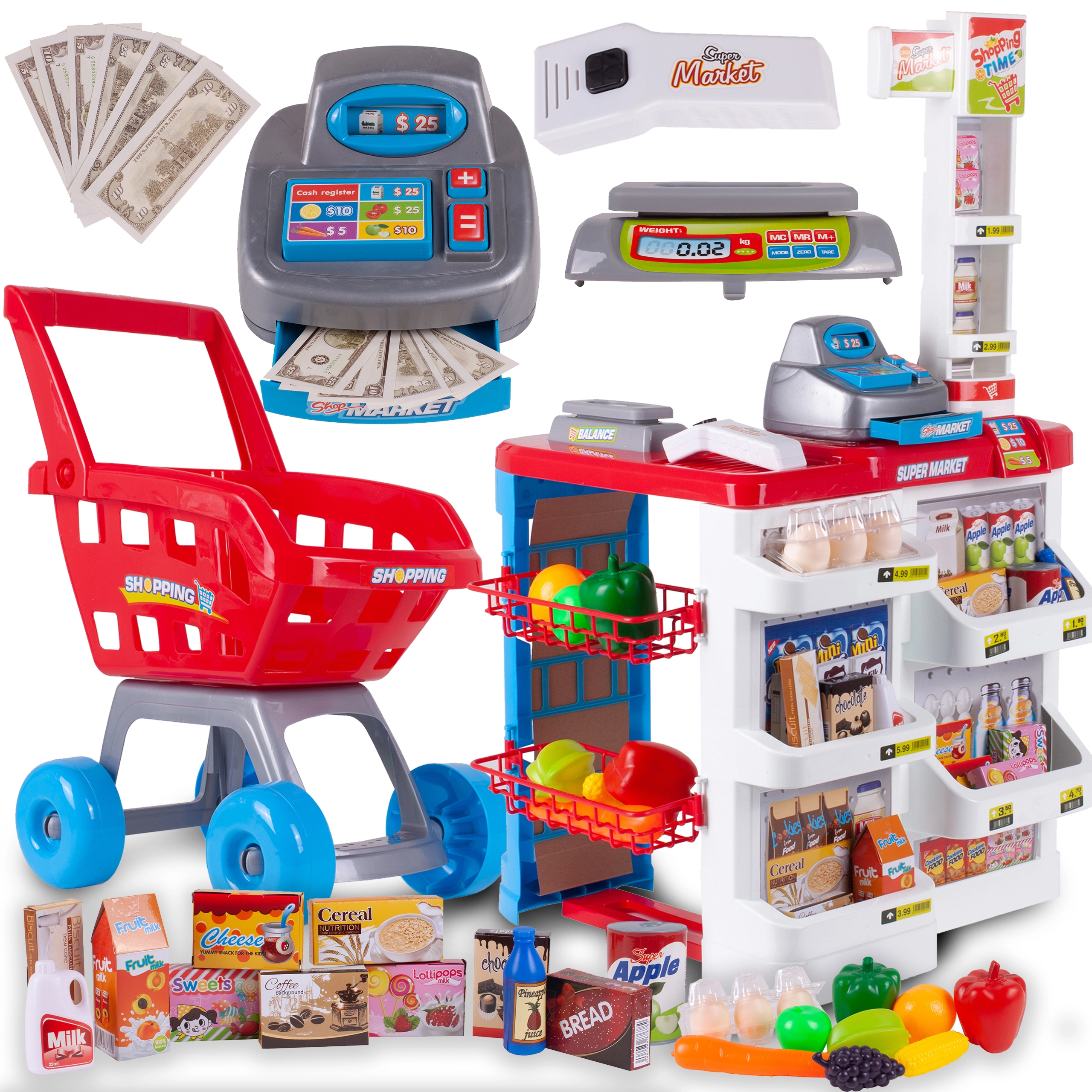 Igra trgovine potiče učenje kroz igru: djeca vježbaju računanje, razvijaju komunikaciju i socijalne vještine, uvježbavaju finu motoriku i logičko razmišljanje. Setovi za djecu 3+, 4+ i 5+ kreću se od jednostavnih pultova s namirnicama do složenih blagajničkih stanica s dodirnom blagajnom, ladicom za novčanice i kovanice, vagom, mikrofonom i zaslonom.