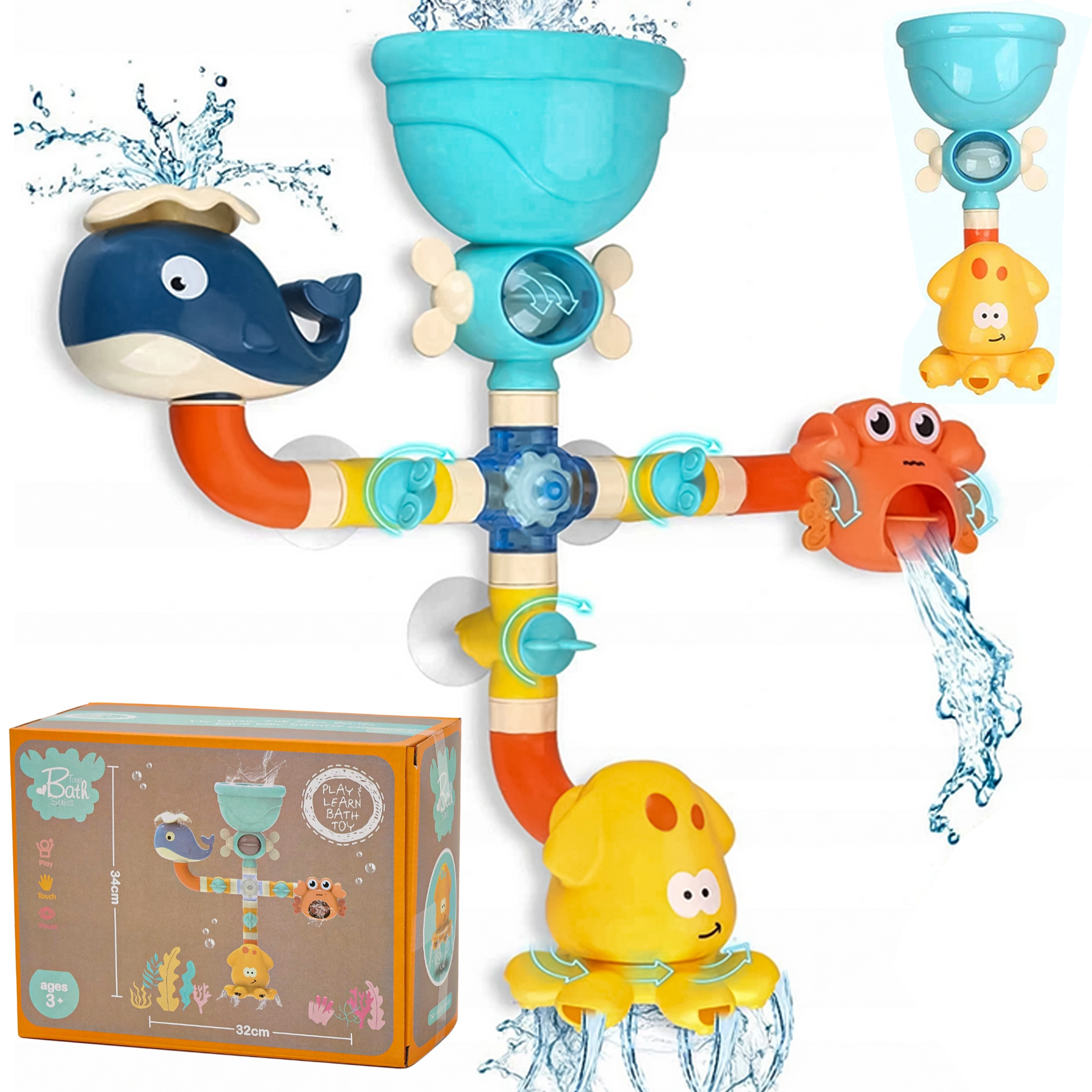 Učenje kroz igru u kadi: kupaonske igračke za djecu, pjenaste naljepnice za kadu, vodene naljepnice, slova i brojevi za vodu te pjenaste slagalice za kadu pomažu djeci upoznavati boje i oblike, vježbati koordinaciju oko–ruka i razvijati maštu. Plutajuće i špricajuće igračke za kadu, silikonske vodene igračke i gumene životinjice vježbaju finu motoriku i potiču na kreativnu igru, dok vodeni mlincevi i čašice potiču logičko razmišljanje i otkrivanje vode.