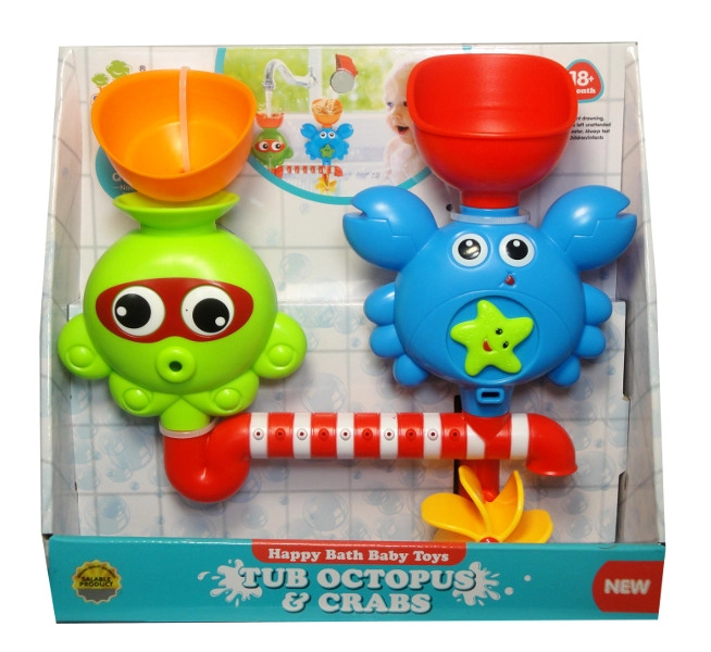 Učenje kroz igru u kadi: kupaonske igračke za djecu, pjenaste naljepnice za kadu, vodene naljepnice, slova i brojevi za vodu te pjenaste slagalice za kadu pomažu djeci upoznavati boje i oblike, vježbati koordinaciju oko–ruka i razvijati maštu. Plutajuće i špricajuće igračke za kadu, silikonske vodene igračke i gumene životinjice vježbaju finu motoriku i potiču na kreativnu igru, dok vodeni mlincevi i čašice potiču logičko razmišljanje i otkrivanje vode.
