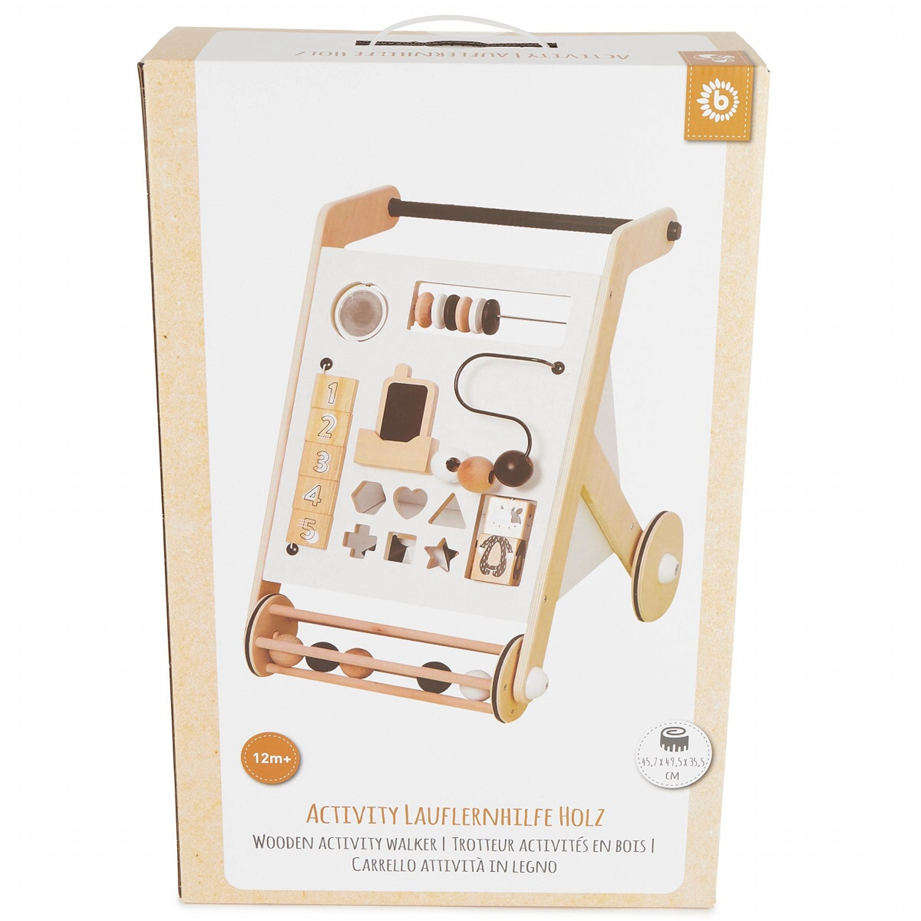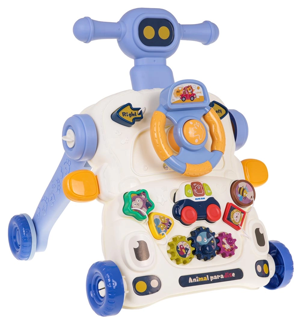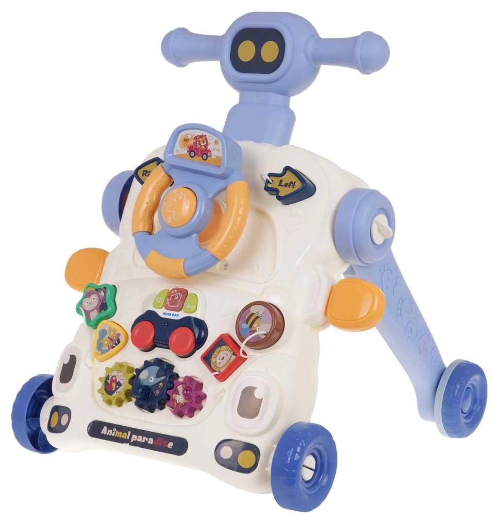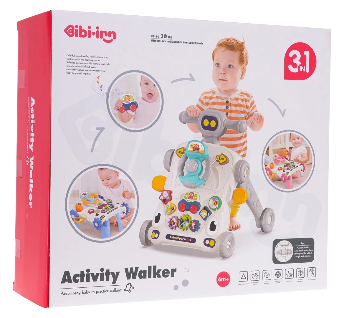Modeli sa stabilnom konstrukcijom i širokom bazom, s protukliznim elementima i tihim gumenim kotačićima, po potrebi s kočnicom ili blokadom kotača, pružaju djetetu sigurnost pri učenju. Ergonomska i po visini podesiva ručka raste s djetetom, odvojivi paneli olakšavaju održavanje, a neke varijante su sklopive i lagane za jednostavno prenošenje. Kvalitetni materijali bez BPA, zaobljeni rubovi i certifikacija EN 71 osiguravaju maksimalnu sigurnost pri prvim koracima.