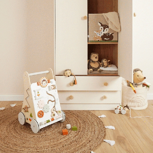Drvene hodalice s montessori aktivnostima, plastične hodalice s glazbenim i svjetlosnim panelom te multifunkcionalne hodalice s aktivnostima (gumbi, oblici, umetaljke, zupčanici) podupiru senzomotorni razvoj. Tihi kotačići čuvaju pod, gumeni obrubi ublažavaju udarce, a mogućnost podešavanja brzine kotača prilagođava tempo učenja. Hodalice za djecu prikladne su za interijer i vanjske prostore te potiču samostalnost, razvoj motorike i zabavno učenje kroz igru.