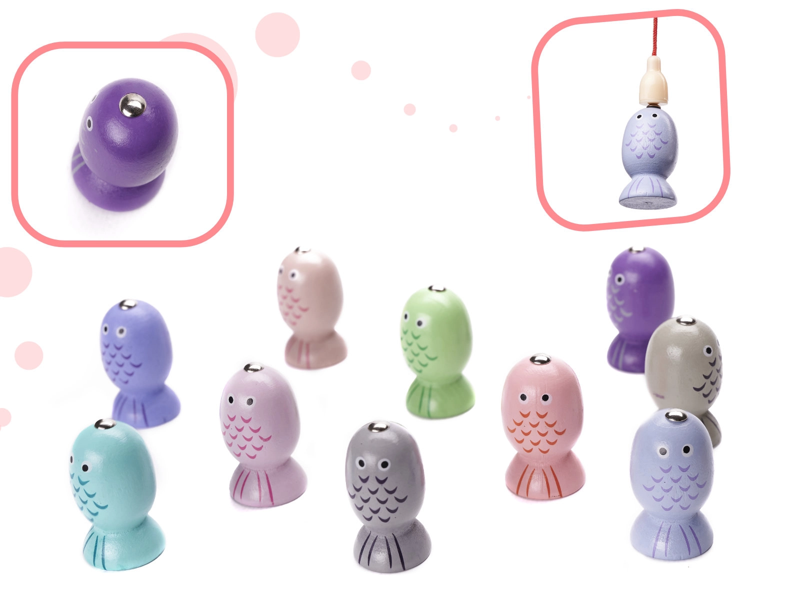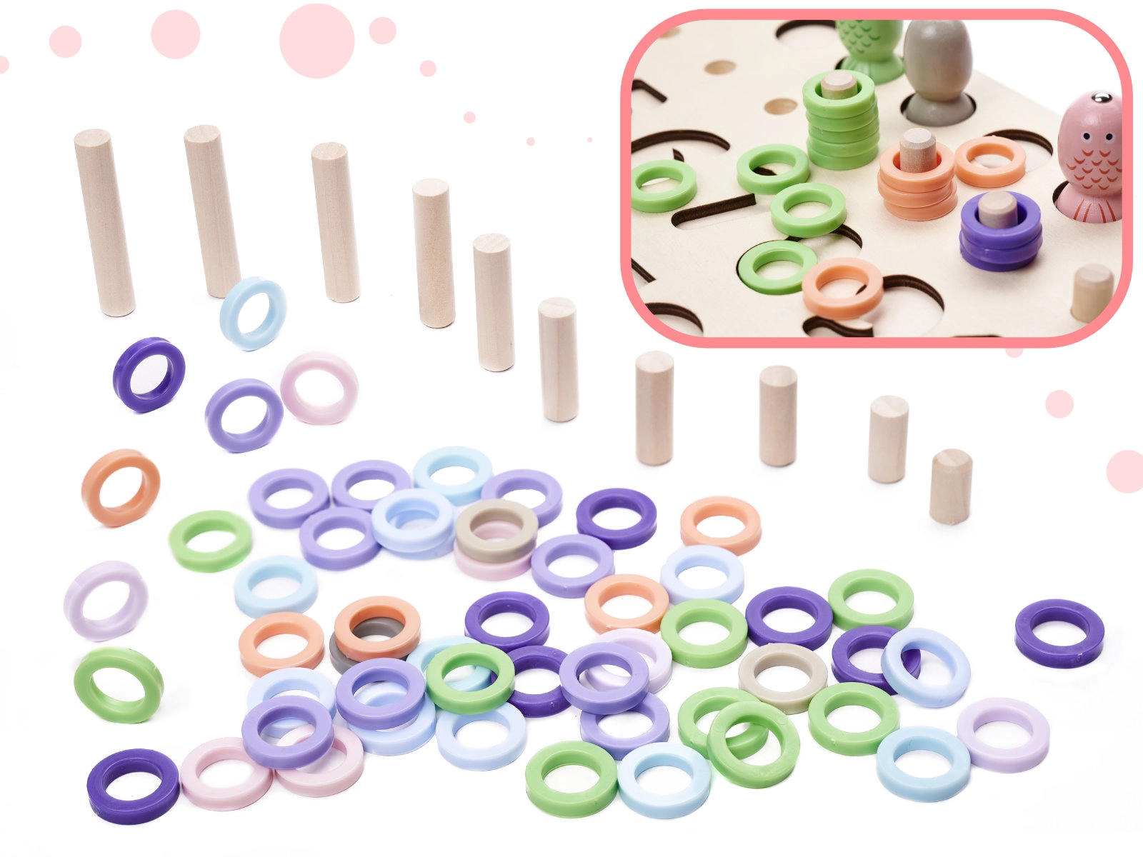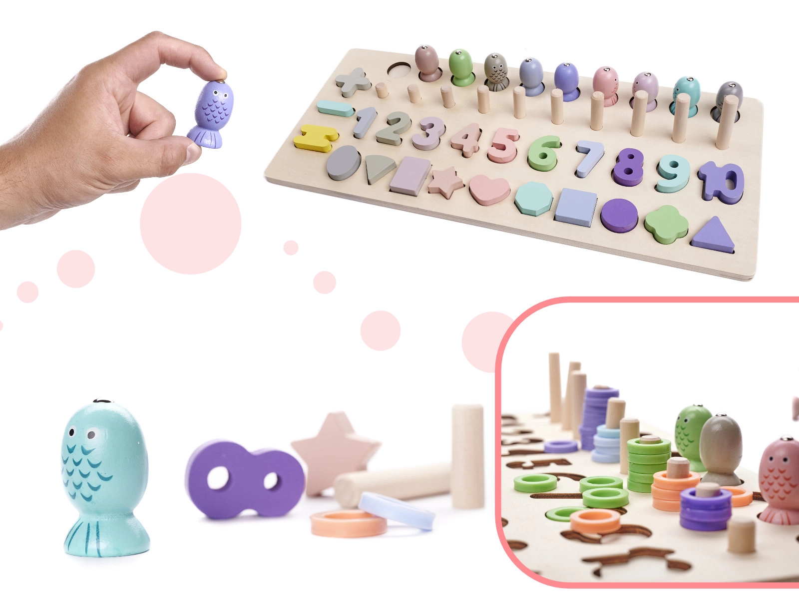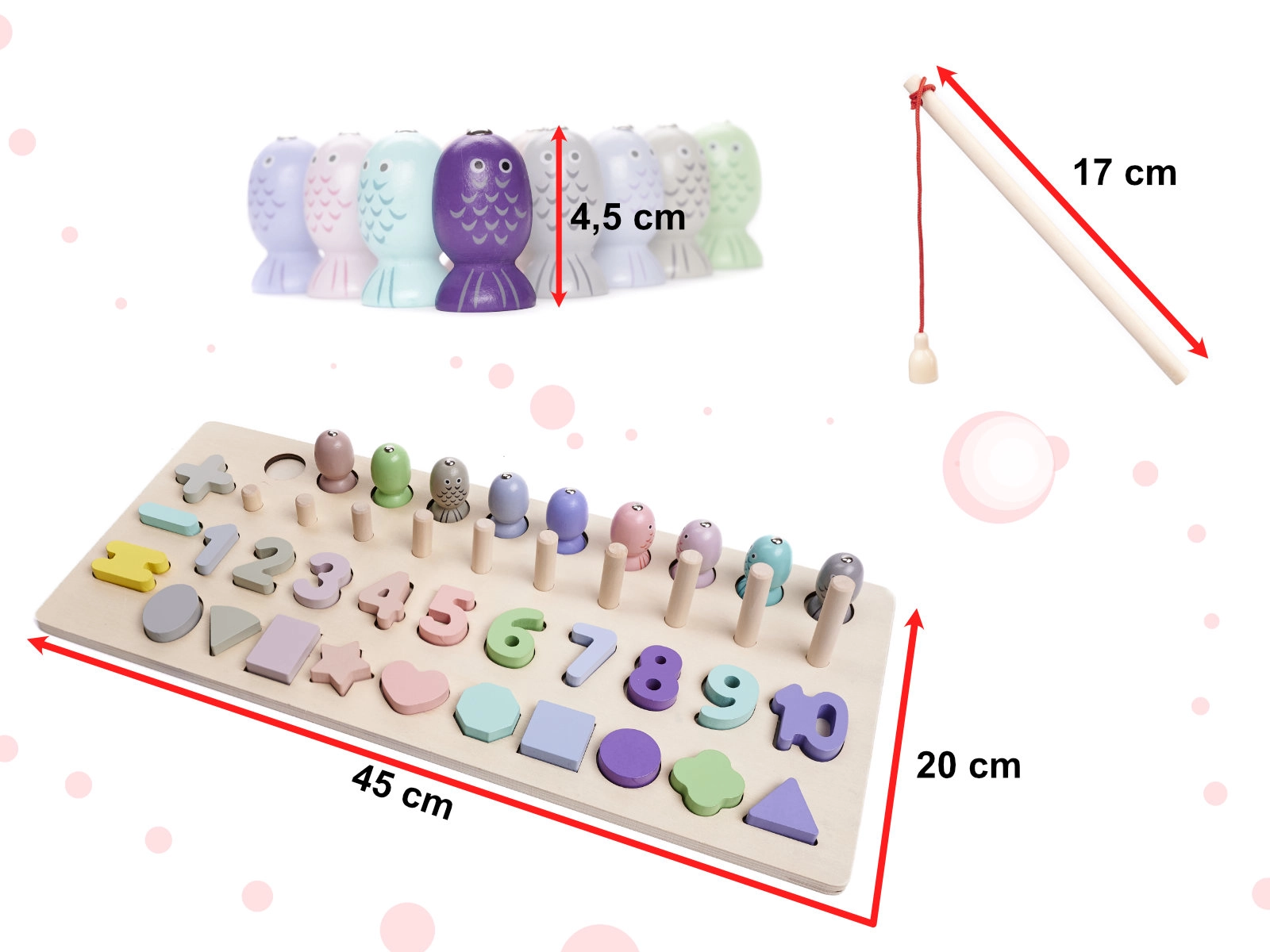 Drvena edukativna igra 2 u 1: sortiranje oblika, abakus i magnetične ribice