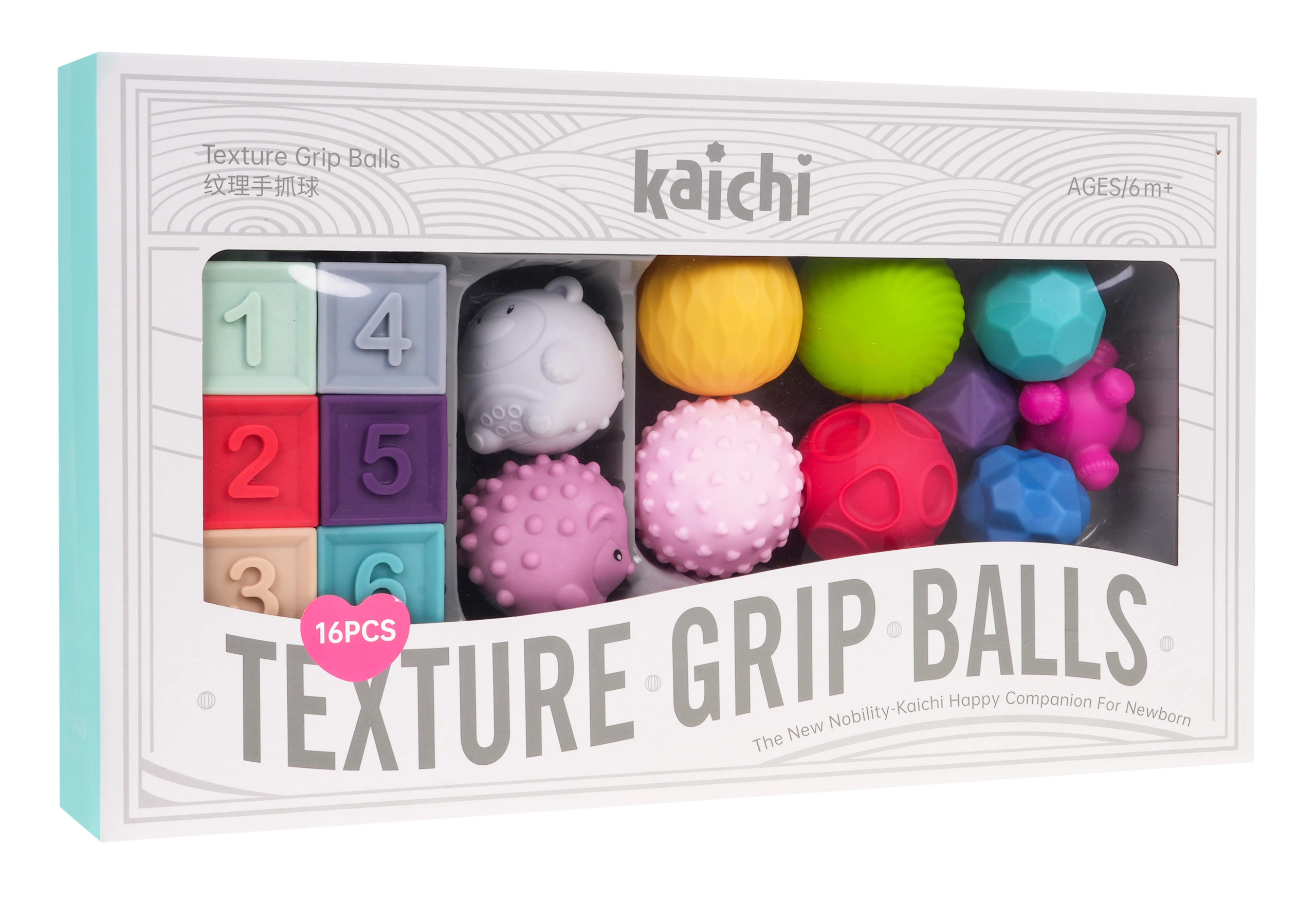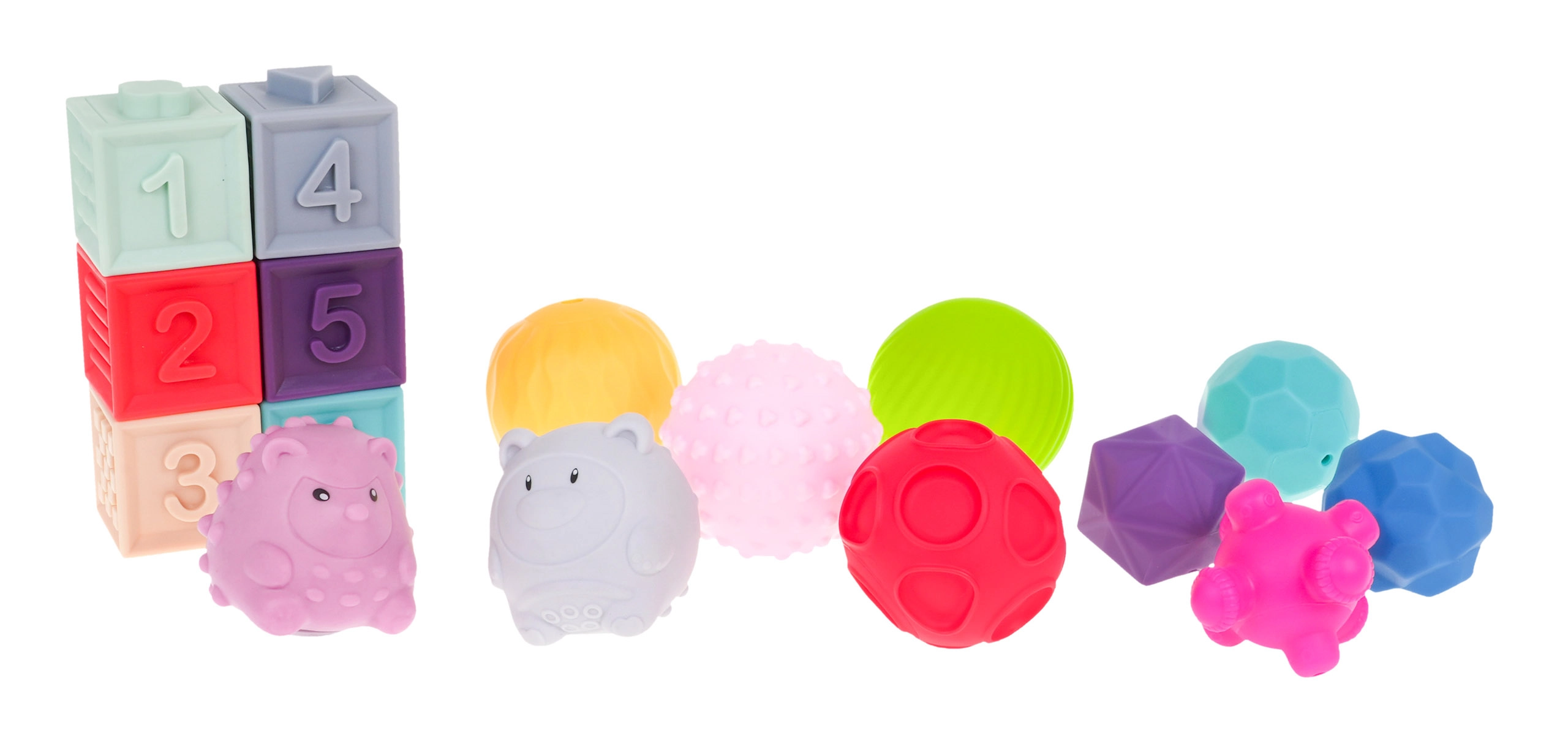 Senzorički set od pjene za djecu 6m+ – loptice, kocke i životinjice, 16 kom