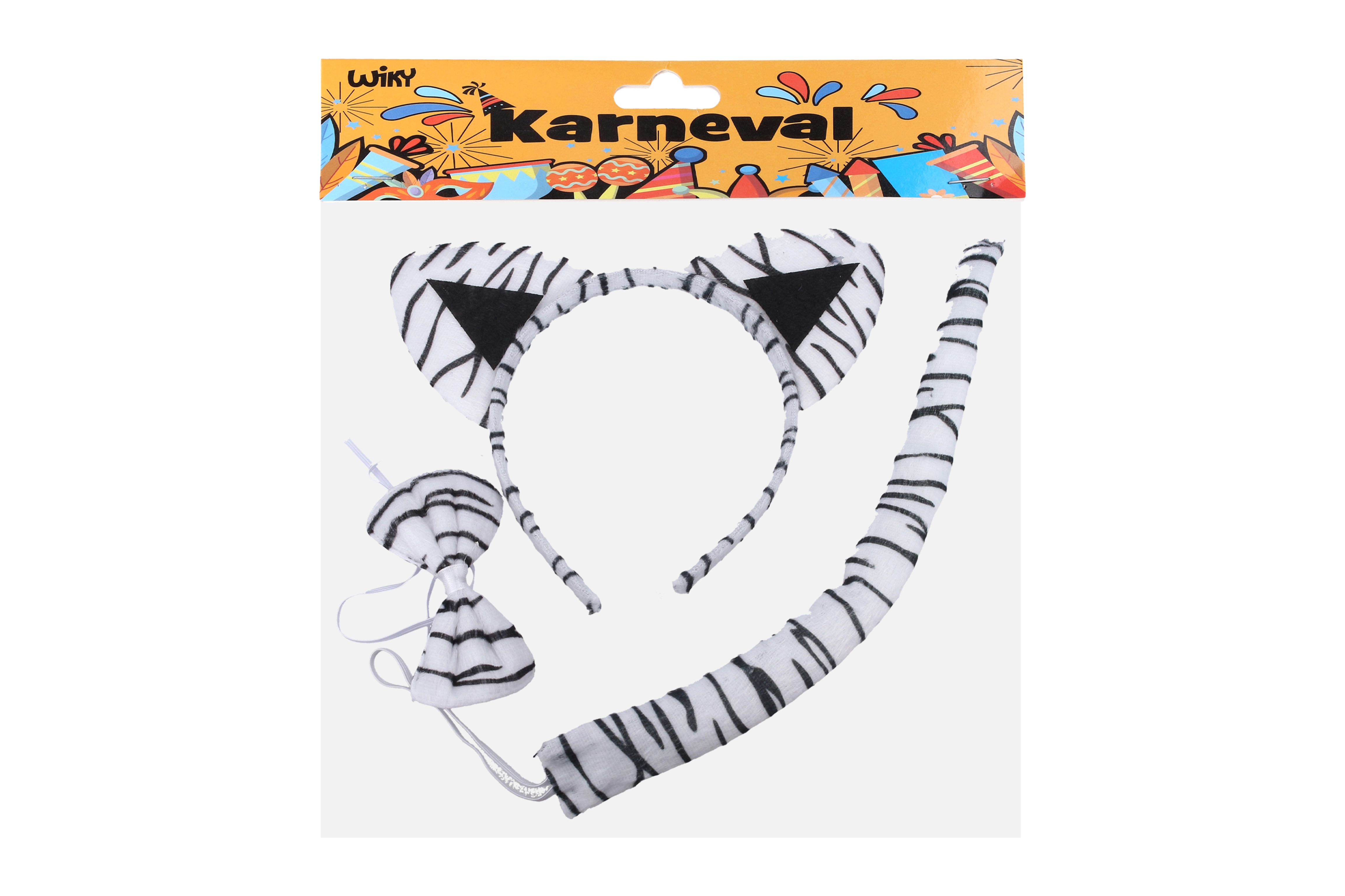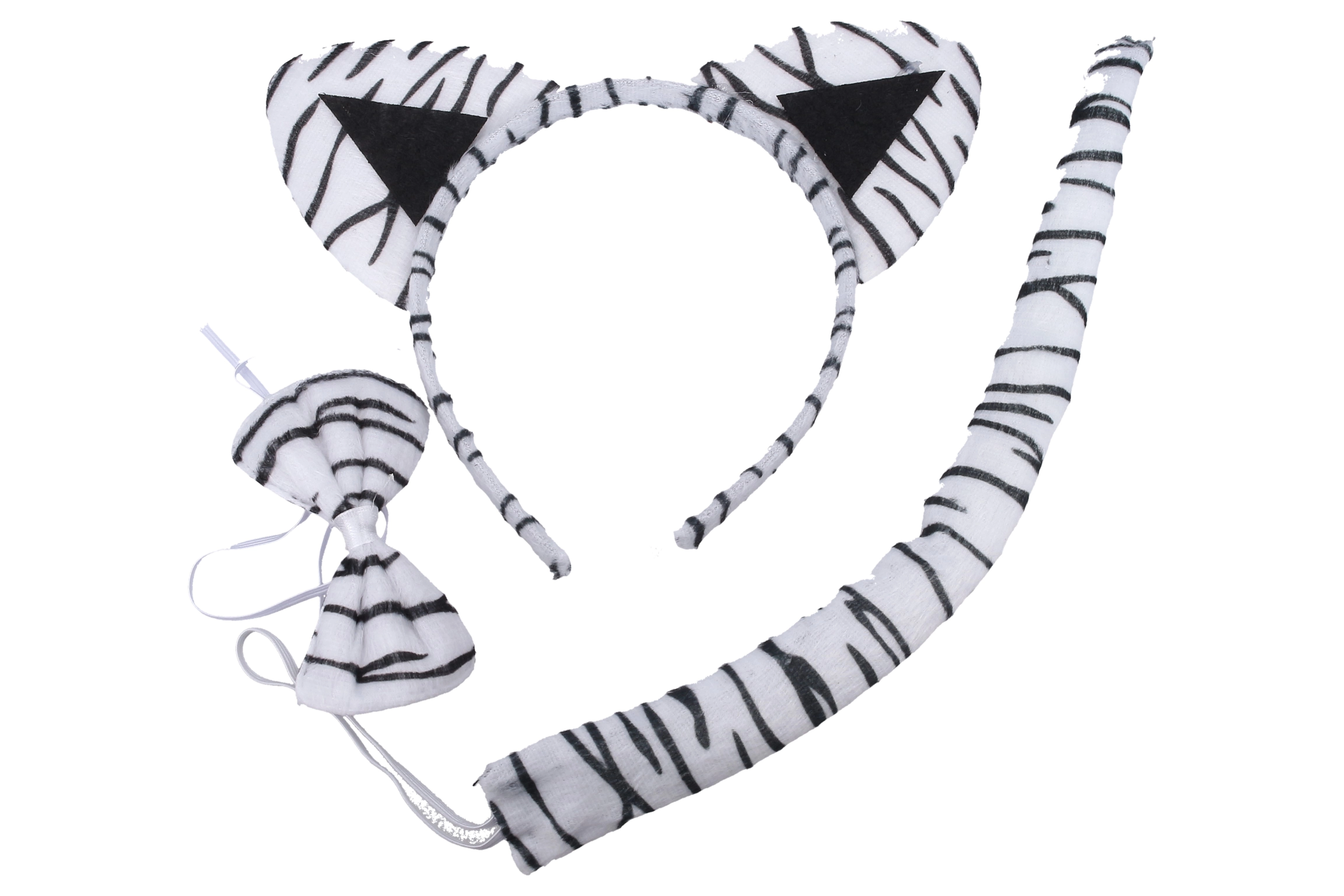 Karneval set – bijeli tigar (obruč s ušima, rep i leptir-mašna)