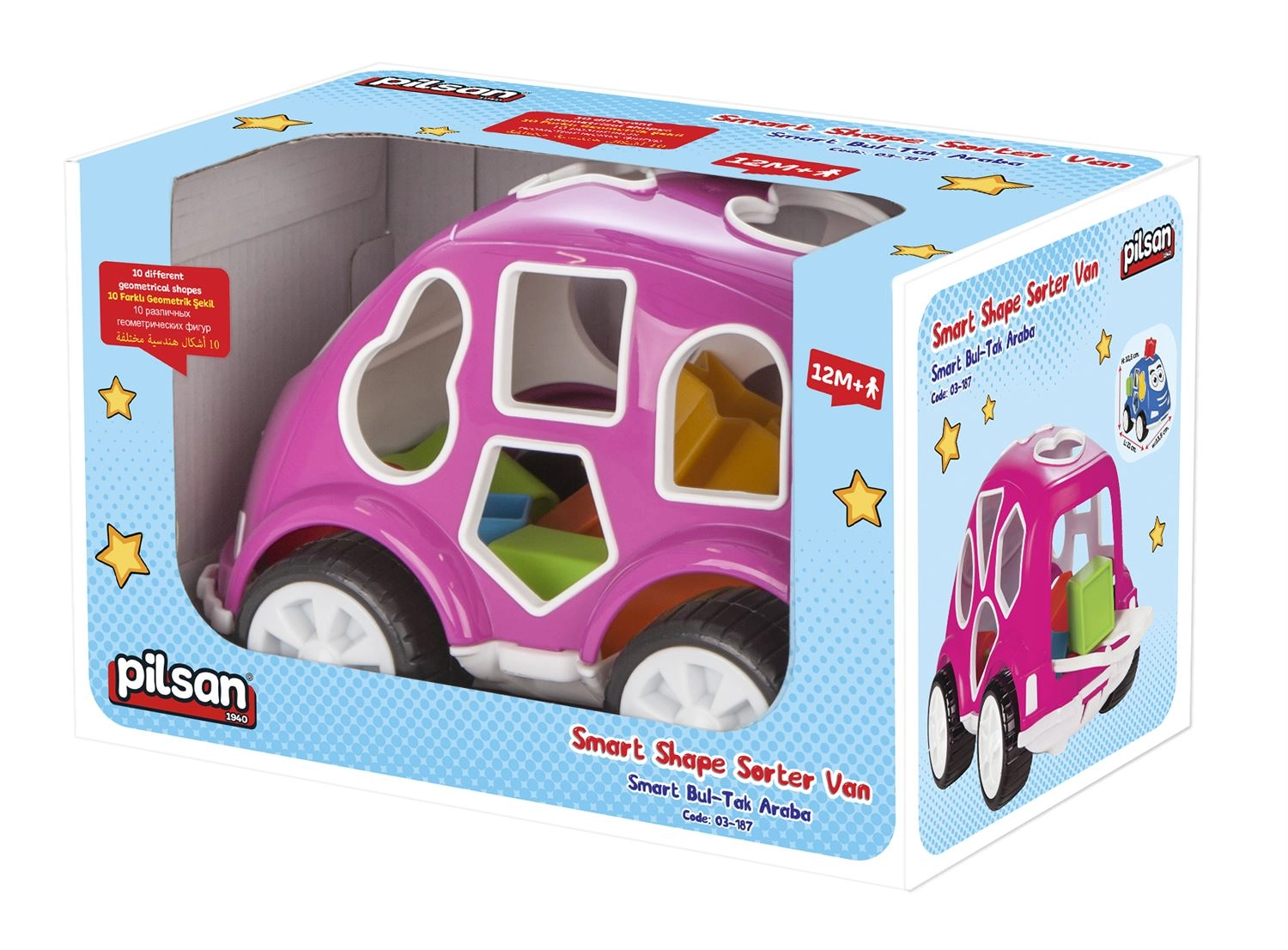 Sortirajući autić s oblicima – ružičasti Pilsan