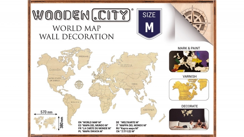 Drvena karta svijeta M 57 × 38 cm WOODEN CITY