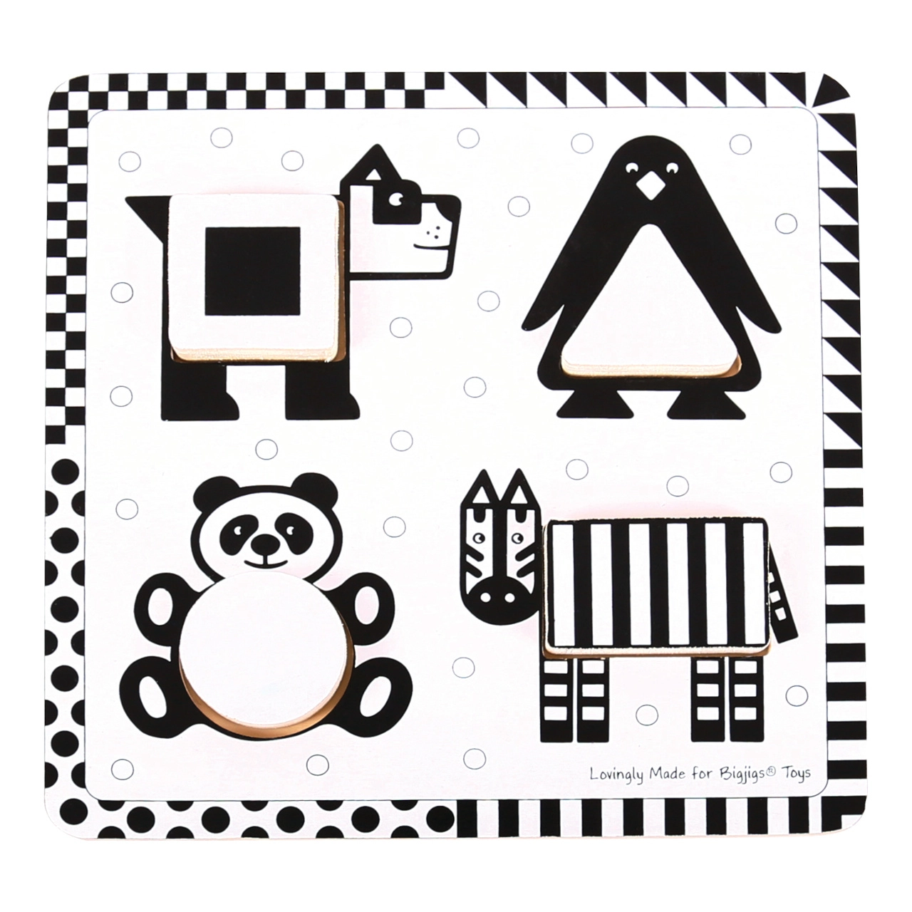Drvene umetaljke slagalica crno-bijeli oblici BIGJIGS TOYS