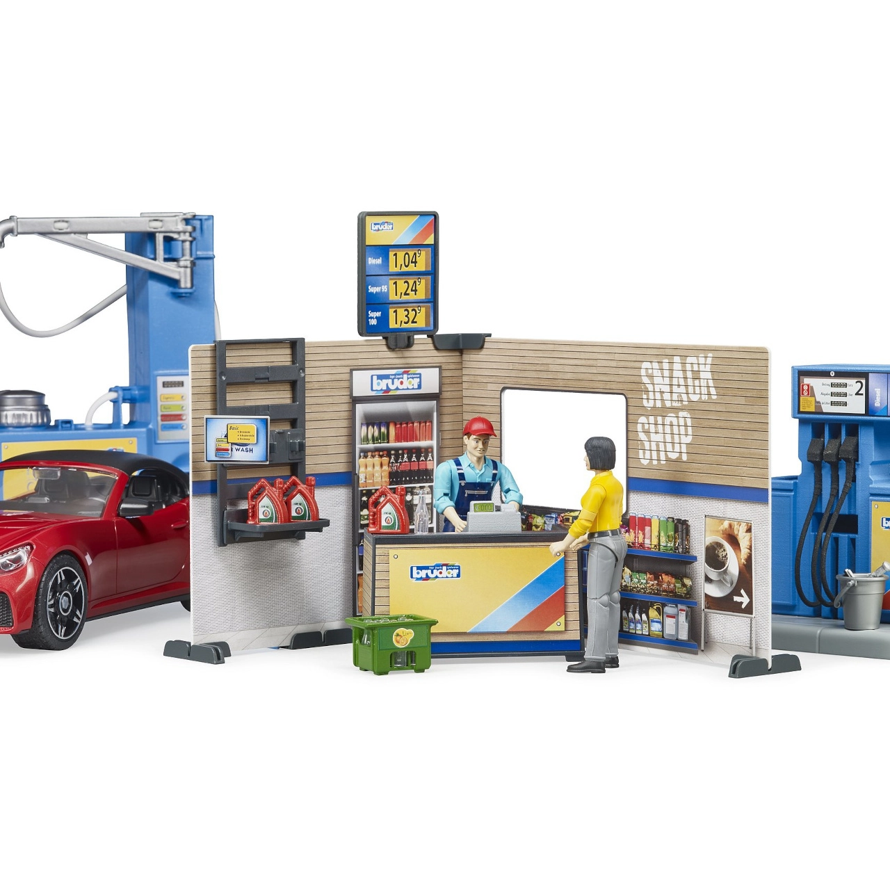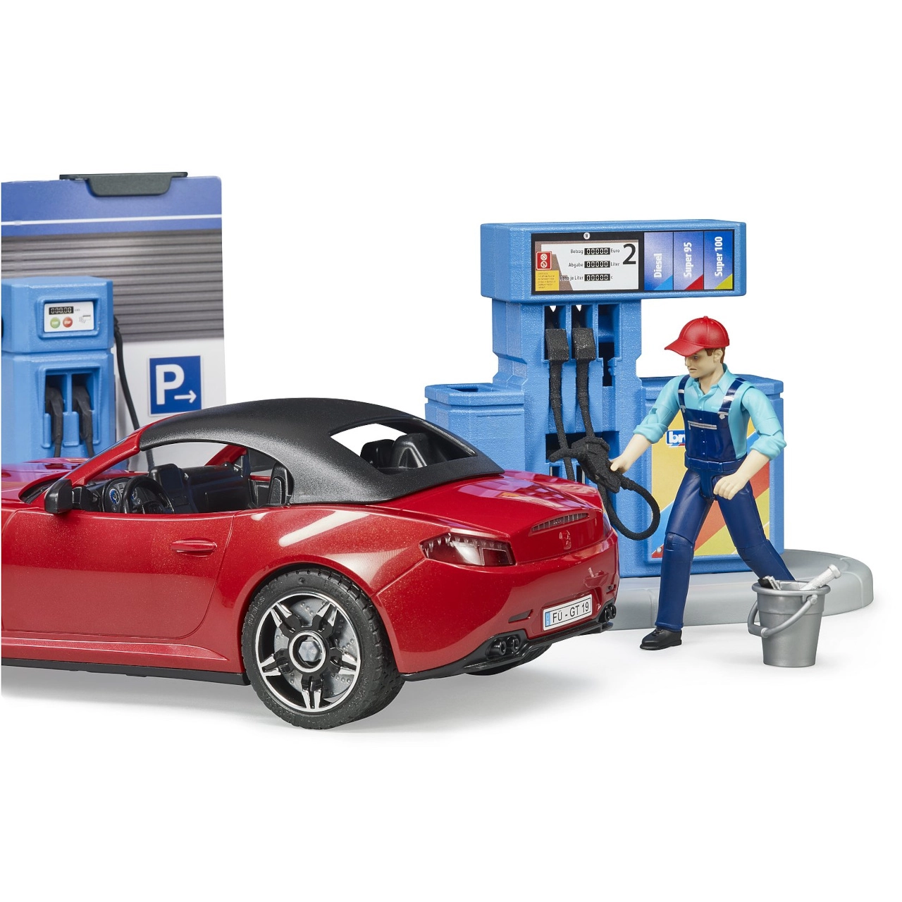 Bruder benzinska postaja sa sportskim automobilom i 2 figurice