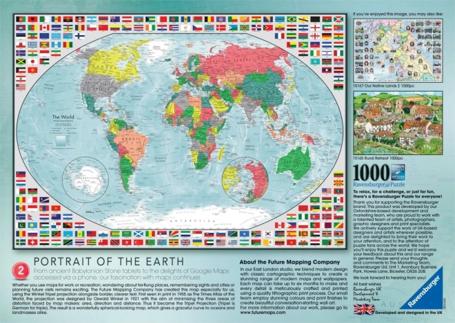 Otkrijte radost slaganja s puzzlama RAVENSBURGER – šarena karta svijeta od 1000 dijelova, koje će oduševiti ljubitelje geografije i kvalitetnih puzzli. Precizno izrezani dijelovi, pouzdano spajanje i intenzivne boje osiguravaju glatko slaganje i prekrasan rezultat dimenzija cca 70 × 50 cm.
