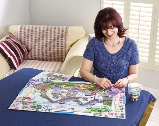 Sklopiva podloga RAVENSBURGER Puzzle Handy pametno je rješenje za ljubitelje slagalica s ograničenim prostorom. Zahvaljujući vodilicama za standardne dimenzije 500 i 1000 dijelova (klasičan oblik, ne panorama) lako ćete slagati i prenositi započete puzzle bez bojazni od rasipanja dijelova.