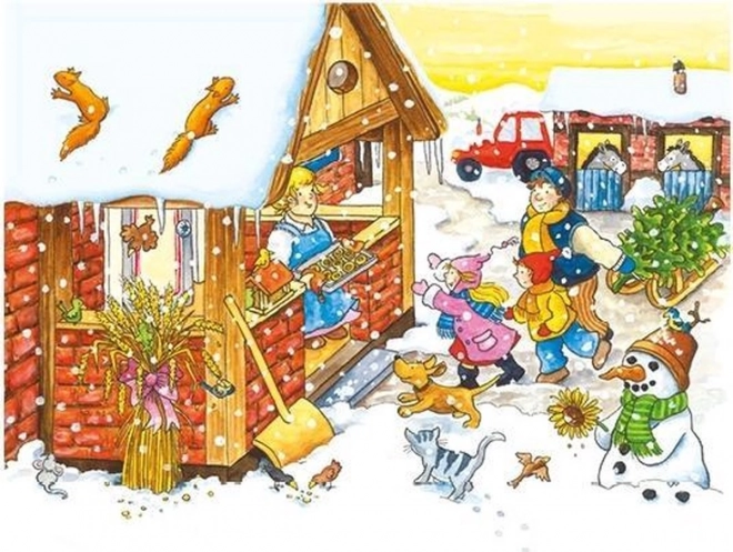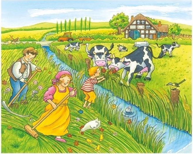 Otkrijte seoski svijet sa životinjama i ljudima tijekom cijele godine. Od 12 čvrstih drvenih kocki složit ćete 6 ilustriranih scena – od proljetnog dvorišta preko ljetnih poslova do zimskih radosti. Kocke su idealne za predškolce, razvijaju koordinaciju oko–ruka i uče djecu shvaćanju odnosa dijelova prema cjelini.