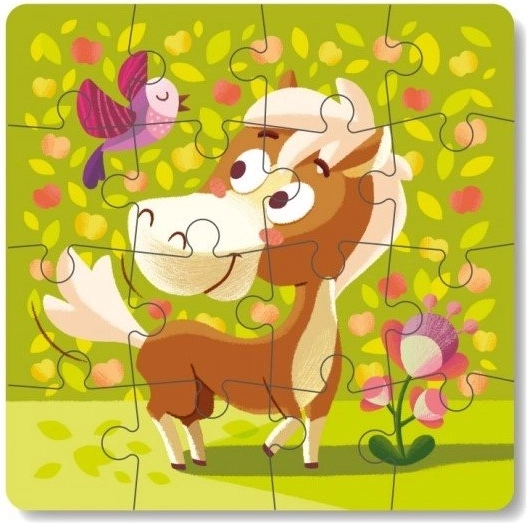 Preslatka slagalica DODO s motivom konjića razveselit će male slagatelje. Sadrži 16 dijelova, a nakon slaganja mjeri 22 × 22 cm – idealno za prvo slaganje i razvoj spretnosti.