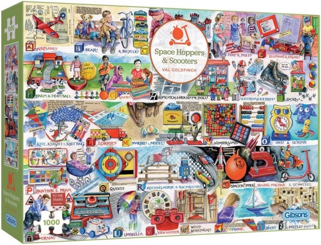 Otkrijte čaroliju klasičnih slagalica s puzzle GIBSONS od 1000 dijelova. Ilustrirana abeceda igara i igračaka razveselit će ljubitelje nostalgije i obiteljskog slaganja. Kvalitetni dijelovi s preciznim izrezima i mat završnom obradom jamče sjajno iskustvo, a završna slika mjeri približno 68 × 49 cm.