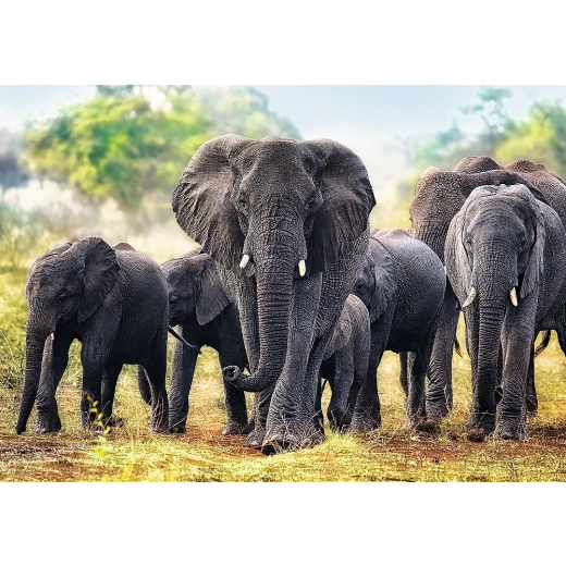Otkrijte ljepotu divlje prirode uz TREFL slagalicu koja prikazuje majestetične afričke slonove. Zahvaljujući precizno izrezanim dijelovima i bogatim bojama, slaganje je glatko i zabavno, a završna slika ističe se u svakom interijeru.