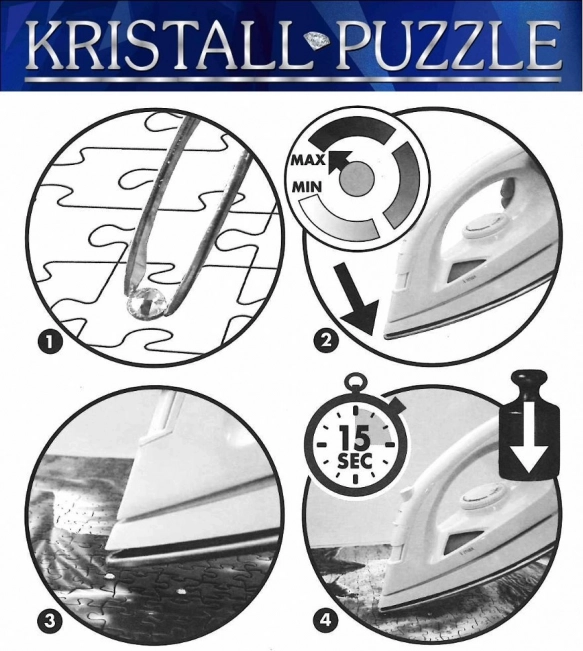 Nakon slaganja možete motiv zalijepiti zajedno (ljepilo nije uključeno u pakiranje) i prema priloženim uputama postaviti dragulje pomoću glačala. Dimenzija složene puzzle je približno 44 x 68 cm.