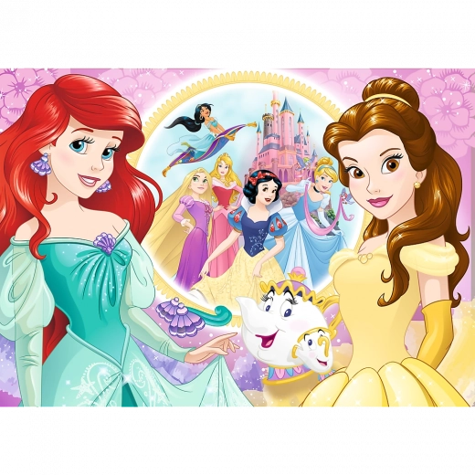 Čarobna dječja slagalica s motivom Disney princeza Belle i Ariel razveselit će sve male obožavatelje. Slagalica ima 100 dijelova i ukrašena je finim zlatnim sjajem koji daje slici i kutiji jedinstven sjaj. Nakon slaganja nastaje slika dimenzija 410 × 278 mm.
