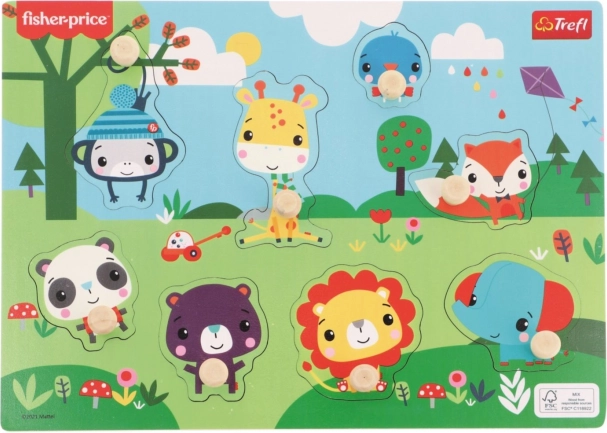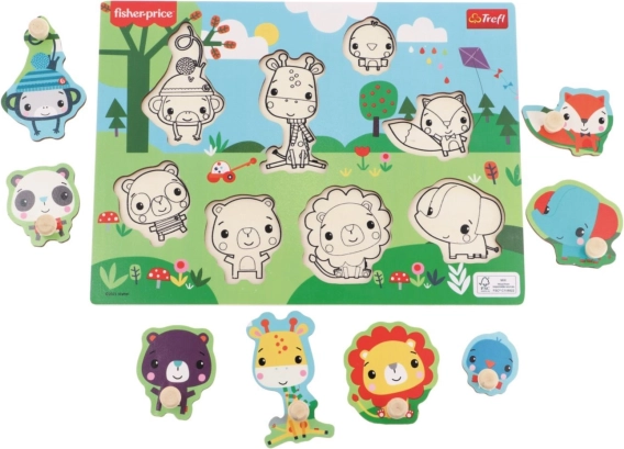 Otkrijte prvu slagalicu koja djecu kroz igru uči prepoznavati oblike i životinje. Drvena slagalica s umetkom s motivima divljih životinja marke FISHER-PRICE dizajnirana je za male ručice – svaki dio ima praktičan gumbić za lako držanje.