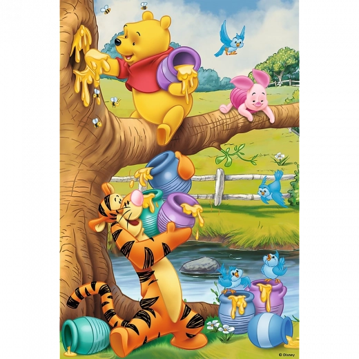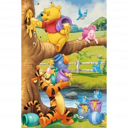 Puzzle Mali zalogajčić nadahnute su svijetom animirane serije Winnie Pooh. Ova kartonska slagalica posebno je dizajnirana za malu djecu. Žive boje i likovi iz crtića mame djecu na igru.