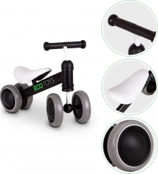 Lagana i stabilna mini gurtnica ECO TOYS za najmlađe idealna je za stan i za van. Zahvaljujući dvama prednjim kotačima, blokadi upravljača i mekom pjenastom sjedalu potiče ravnotežu i motoriku djece od 18 do 36 mjeseci. Neklizajuća, meka kotačića ne oštećuju pod, a izdržljiva, ali lagana konstrukcija (2,2 kg) osigurava sigurnu i udobnu vožnju.