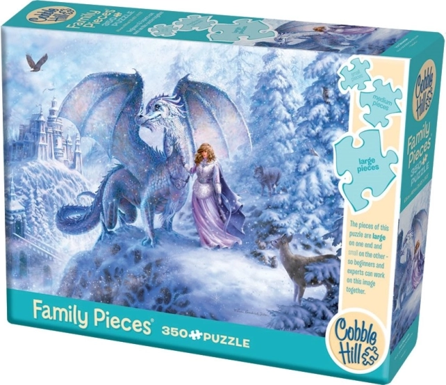 Obiteljska slagalica COBBLE HILL Ledeni zmaj osmišljena je tako da u njoj uživaju i mali i veliki. U jednom dijelu slike nalaze se veliki dijelovi idealni za mlađu djecu, u sredini srednji dijelovi za ugodno slaganje, a na drugoj strani mali dijelovi za iskusnije slagatelje. Tako svatko pronalazi svoj dio motiva i slaganje teče opušteno i zajednički.
