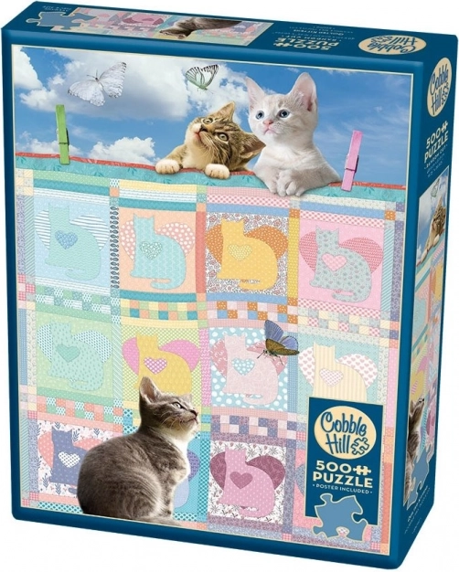 Uživajte u opuštanju uz slaganje šarmantnog motiva Pokrivač s mačićima brenda COBBLE HILL. Poseban nekonvencionalan oblik dijelova povećava zabavu i izazov, a priložena šarena predložak slika pomoći će vam pri slaganju. Gotova slagalica ima dimenzije cca 48,9 × 67,6 cm i sadrži 500 dijelova.