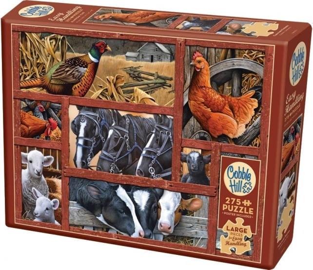 Uživajte u opuštenom slaganju s puzzleom COBBLE HILL iz kolekcije Easy Handling s motivom prijatelja na farmi. Zahvaljujući ekstra velikim dijelovima (otprilike 3 cm) njima se lako rukuje, što će cijeniti djeca i starije dobne skupine. Nepravilni izrez bez klasične mreže donosi zabavan izazov i potiče vježbanje fine motorike. U pakiranju se nalazi i predložak 31,6 × 22,9 cm; sastavljena slagalica ima dimenzije cca 61 × 45,7 cm.