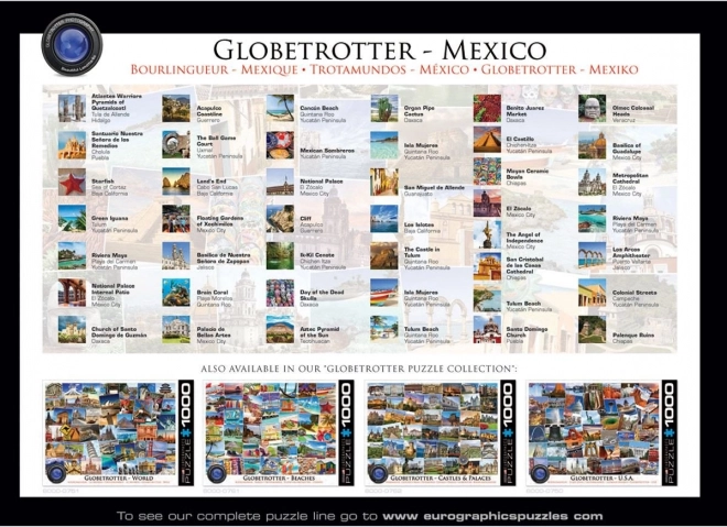 Uživajte u atmosferi Meksika – od netaknutih plaža preko veličanstvenih palača do drevne arhitekture. Ova slagalica iz kolekcije Svjetobježnik razveselit će svakoga tko voli putovanja i detaljne ilustracije. Zahvaljujući nepravilnoj štanci ponudit će veći izazov i zabavu za duge sate.