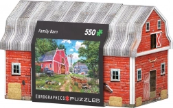 Otkrijte kolekcionarsko izdanje puzzli u jedinstvenoj limenoj kutiji koja ima oblik obiteljskog imanja. Kutija služi ne samo kao praktična ambalaža, već i kao originalna dekoracija interijera. Poklopac čini središnji dio imanja i lako se skida.