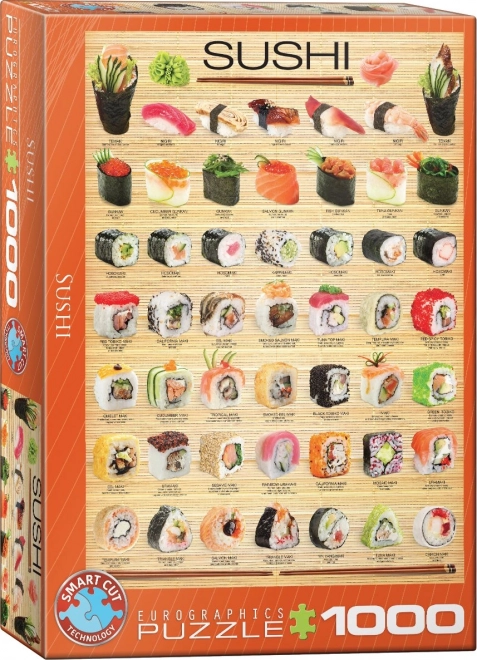 Puzzle EUROGRAPHICS s motivom sushi donosi vam ne samo estetski doživljaj, već i veći izazov zahvaljujući jedinstvenom rezu. Zahvaljujući netipičnom obliku dijelova, iskušat ćete svoje logičko razmišljanje i strpljenje. Tekstovi na puzzli su na engleskom, a za ljubitelje japanske kuhinje na poleđini kutije nalazi se recept za sushi.