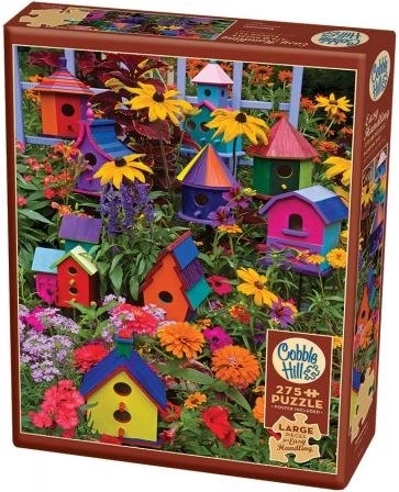 Uživajte u slaganju s puzzlama COBBLE HILL Ptičje kućice iz kolekcije Easy Handling: ekstra veliki dijelovi (~3 cm) za lako rukovanje, vježbanje fine motorike i veći izazov zahvaljujući nepravilnim oblicima. U pakiranju je predložak 31,6 × 22,9 cm, a složena slagalica ima 45,7 × 61 cm.
