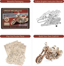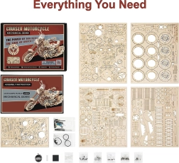 Otkrijte radost modelarstva s ovom preciznom 3D slagalicom motocikla od šperploče. Model nudi navijni opružni pogon, funkcionalno upravljanje, pokretne klipove i radnu prednju suspenziju. Zahvaljujući 420 dijelova i srednjoj težini uživat ćete u 4–5 sati zabave; nakon sastavljanja motocikl je sposoban samostalne vožnje i oduševit će dekorativnim izgledom te malim spremnicima uz sjedalo.