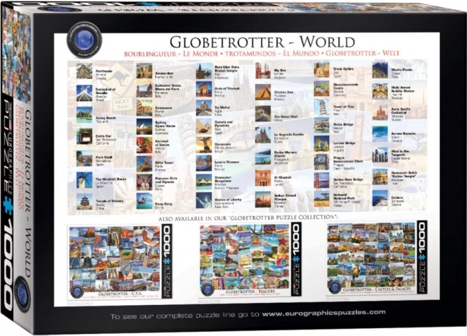 Uronite u fascinantno putovanje oko svijeta s puzzleom EUROGRAPHICS Svjetski putnik. Svaki dio uklapa se u pažljivo osmišljenu ilustraciju punu slavnih znamenitosti i destinacija. Na poleđini kutije pronaći ćete na engleskom jeziku detaljne opise više od 40 najpoznatijih mjesta, tako da je slaganje ne samo zabavno, već i poučno.