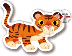 Ovaj set sadrži četiri zasebne slagalice s motivima omiljenih safari životinjica. Zahvaljujući različitom broju dijelova (2, 3, 4 i 5), dijete postupno stječe sigurnost i radost u slaganju. Veliki, čvrsti dijelovi debljine 3 mm prilagođeni su malim dječjim rukama i njima se lako rukuje.