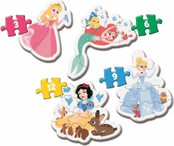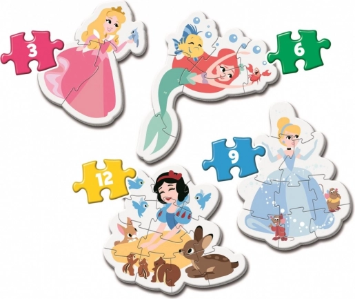 Uz set Moje prve slagalice djeca će uživati u slaganju s omiljenim junakinjama iz DISNEY bajki. Četiri različite razine težine (3, 6, 9 i 12 dijelova) omogućuju prirodan napredak i jačaju samopouzdanje pri svakom dovršenom crtežu. Zahvaljujući ekstra velikim i debelim dijelovima (3 mm) slagalice se lako drže i najmanjim ručicama.