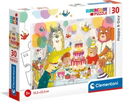 Dječje puzzle iz linije SuperColor brenda CLEMENTONI s rođendanskim motivom razveselit će male graditelje od 3 godine. Kvalitetni materijali i jasne, živopisne boje jamče dugotrajnost i užitak u slaganju. Zahvaljujući većim i čvrstim dijelovima puzzle razvijaju manualnu spretnost, zapažanje i strpljenje. Gotova slika mjeri približno 33,5 × 23,5 cm.