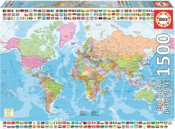 Otkrijte svijet s kvalitetnim puzzleom EDUCA od 1500 dijelova koji prikazuje detaljnu političku kartu svijeta. U pakiranju je uključeno ljepilo gratis za jednostavno fiksiranje dovršene slike dimenzija cca 85 × 60 cm.