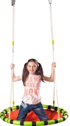 Prostrani viseći krug brenda WOODY s promjerom od 103 cm nudi djeci i odraslima udobno i sigurno ljuljanje. Zahvaljujući nosivosti do 80 kg, platnu na sjedištu za veći komfor i pjenastoj navlaci na konstrukciji idealan je za svakodnevnu vanjsku zabavu. Sklopiva konstrukcija od 4 dijela omogućuje jednostavno skladištenje, a vješanje pomoću metalnih prstenova jamči brzu instalaciju.