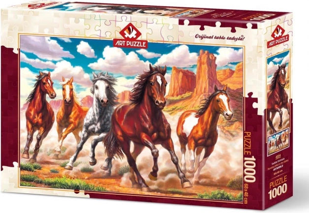 Uživajte u opuštanju i zabavi uz puzzle s motivom divljih konja u slikovitoj dolini. Slagalica od 1000 dijelova nudi kvalitetnu izradu, precizne izreze i gotovu sliku dimenzija cca 68 × 48 cm. Proizvođač ART PUZZLE dodatno pruža uslugu slanja nedostajućeg dijela.